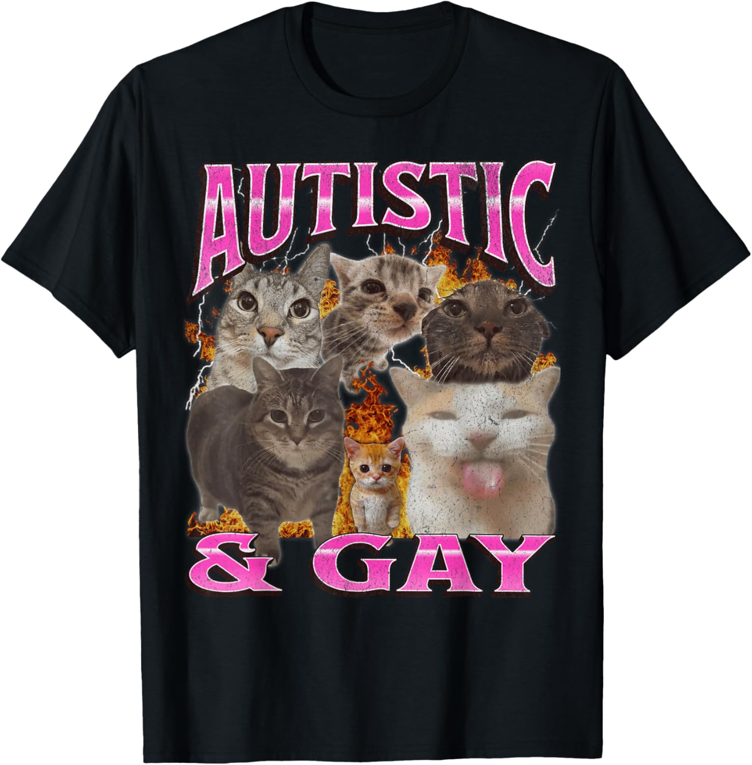Autistic and Gay Funny Cat Meme Bootleg Graphic T-Shirt