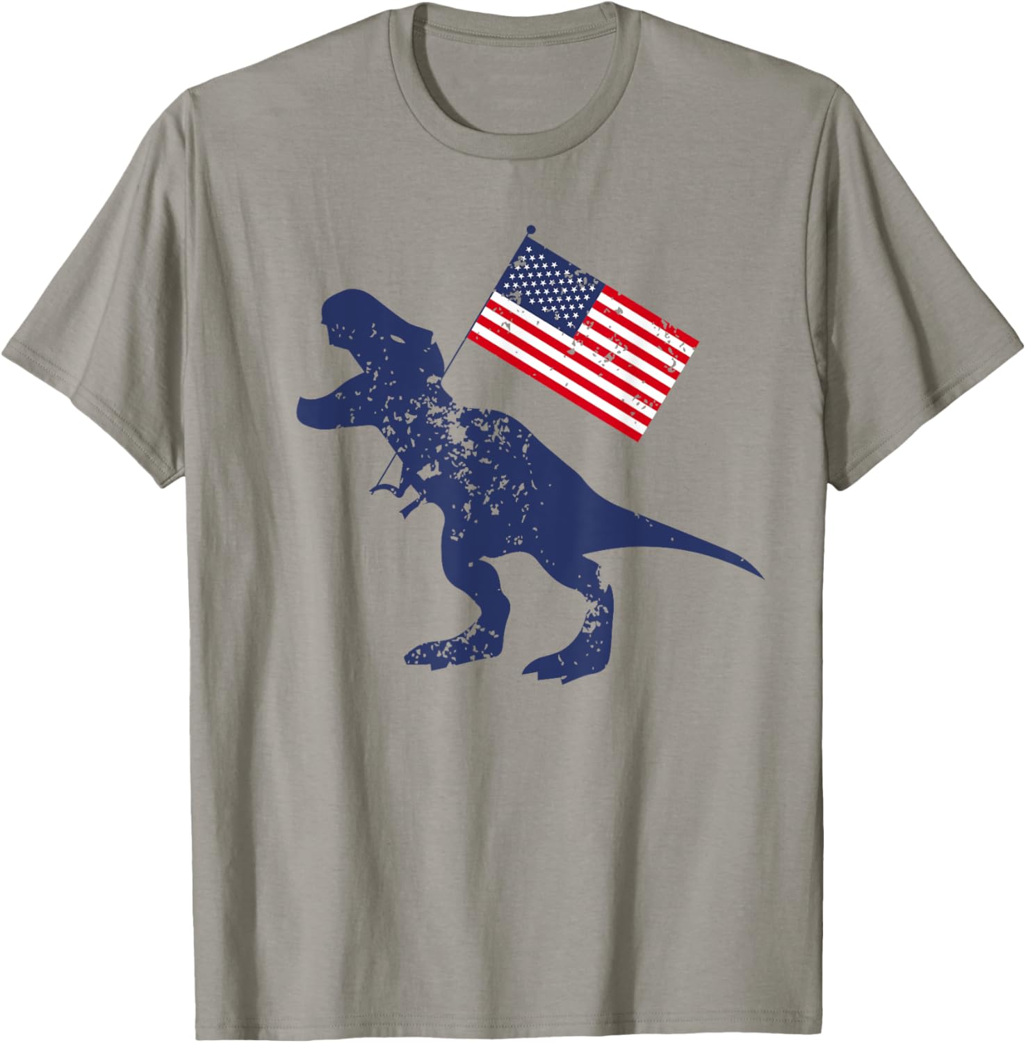 Awesome America American Dino Flag July 4th USA Dinosaur T-Shirt