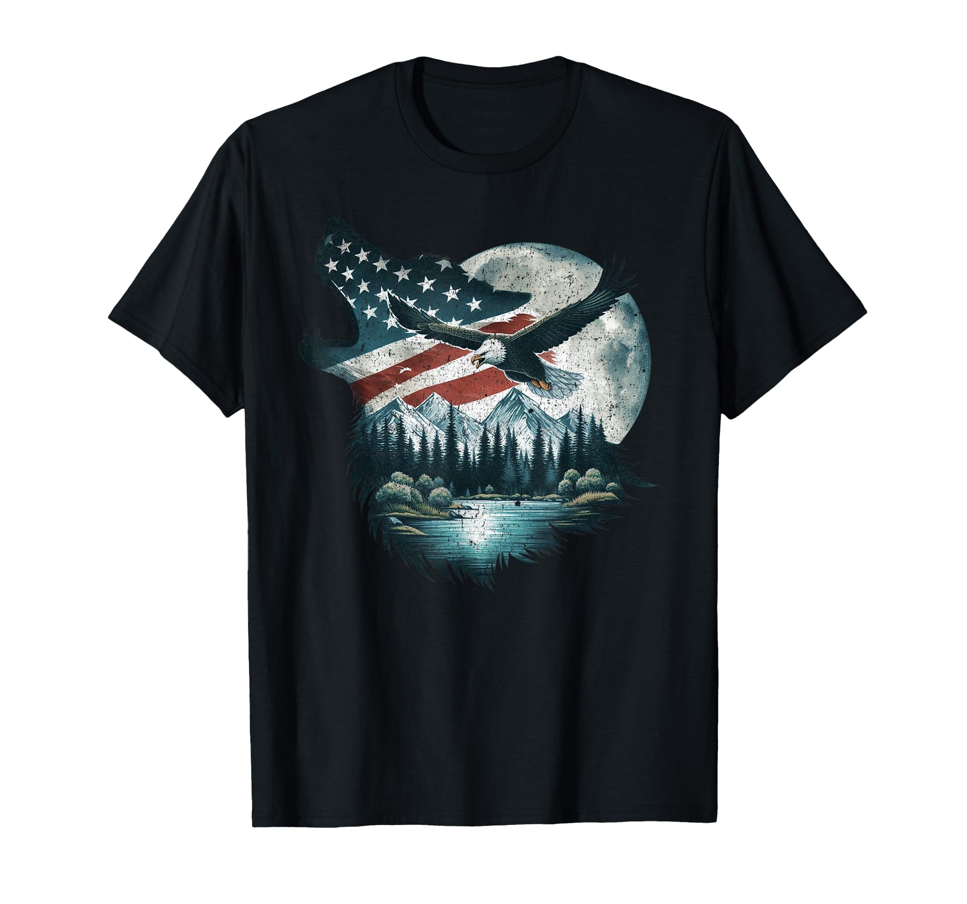 Bald Eagle Wolf US Flag 4th Of July Patriotic Man Woman T-Shirt