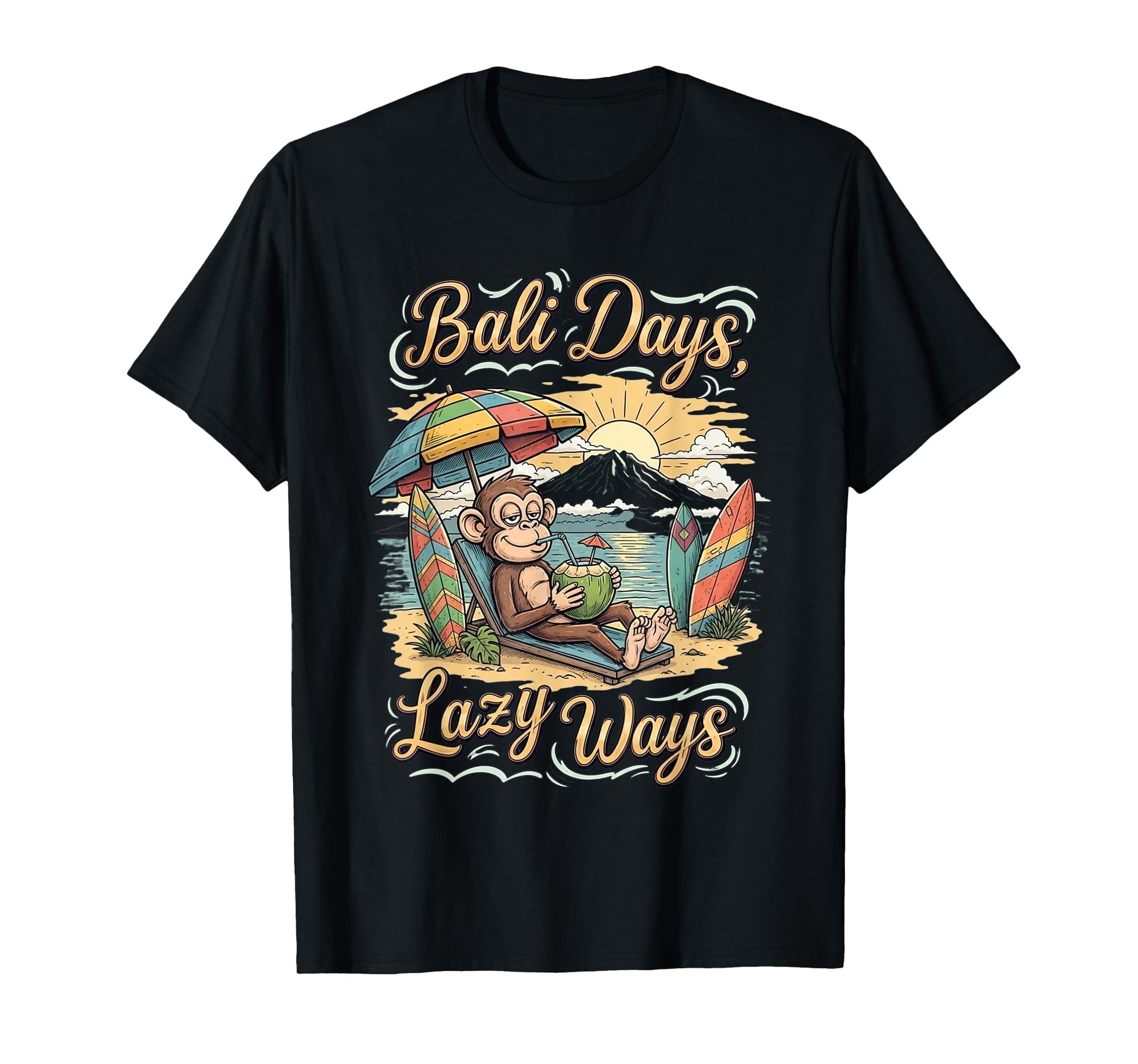Bali Days Lazy Monkey Beach Vacation Graphic Souvenir T-Shirt