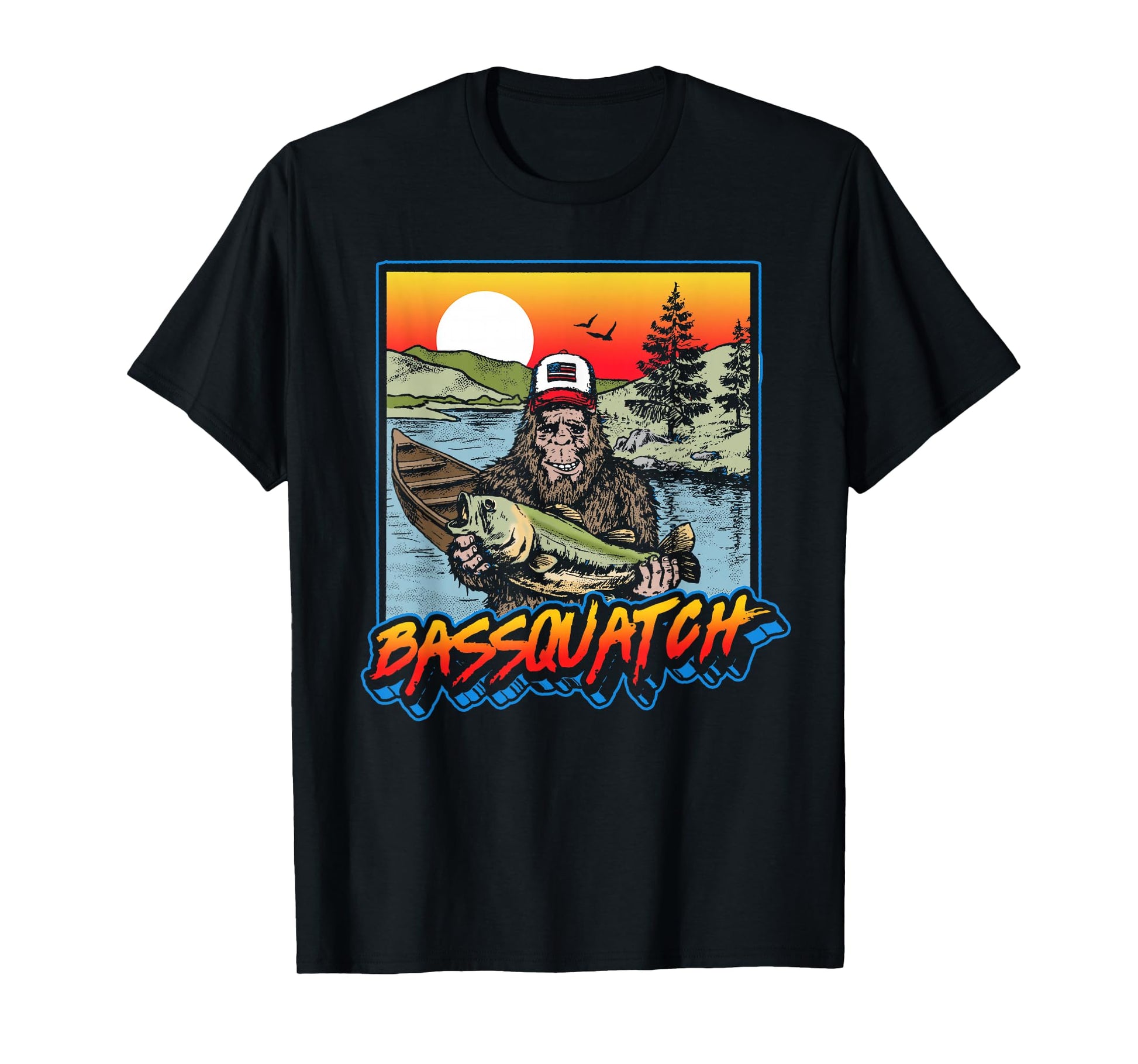 Bassquatch! Funny Bass Fishing Sasquatch Retro 80s T-Shirt