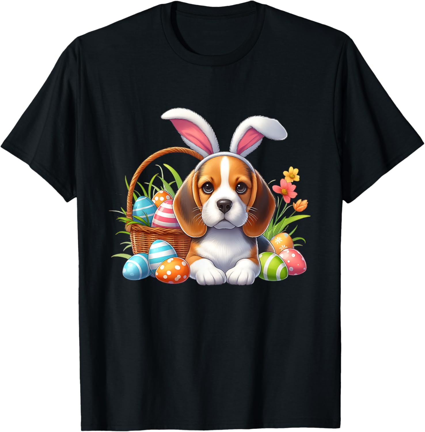 Beagle with Easter Bunny Ears and Colorful Easter Eggs T-Shirt
