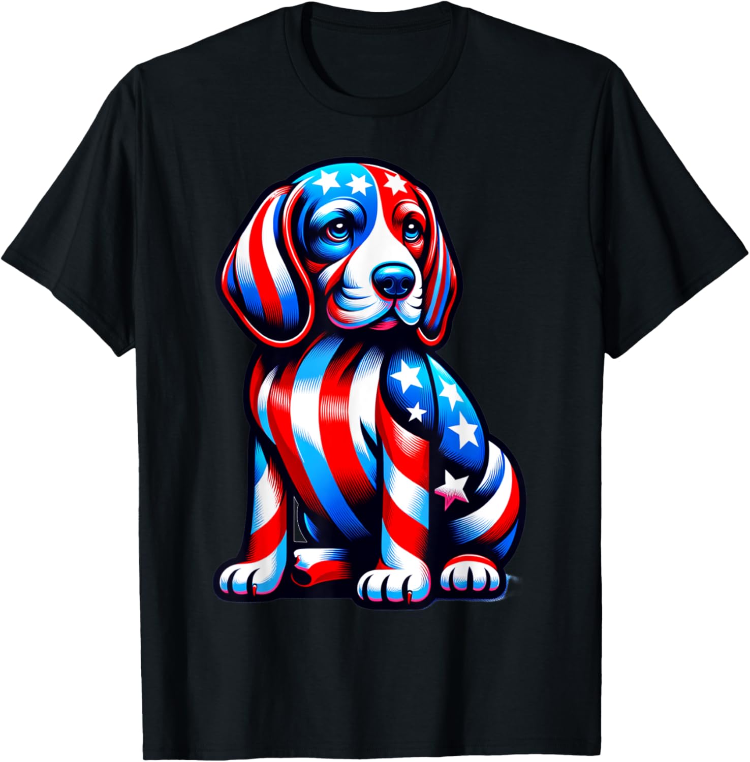 Cute Beagle Dog USA Flag Women Men Dog Lovers 4th Of July T-Shirt