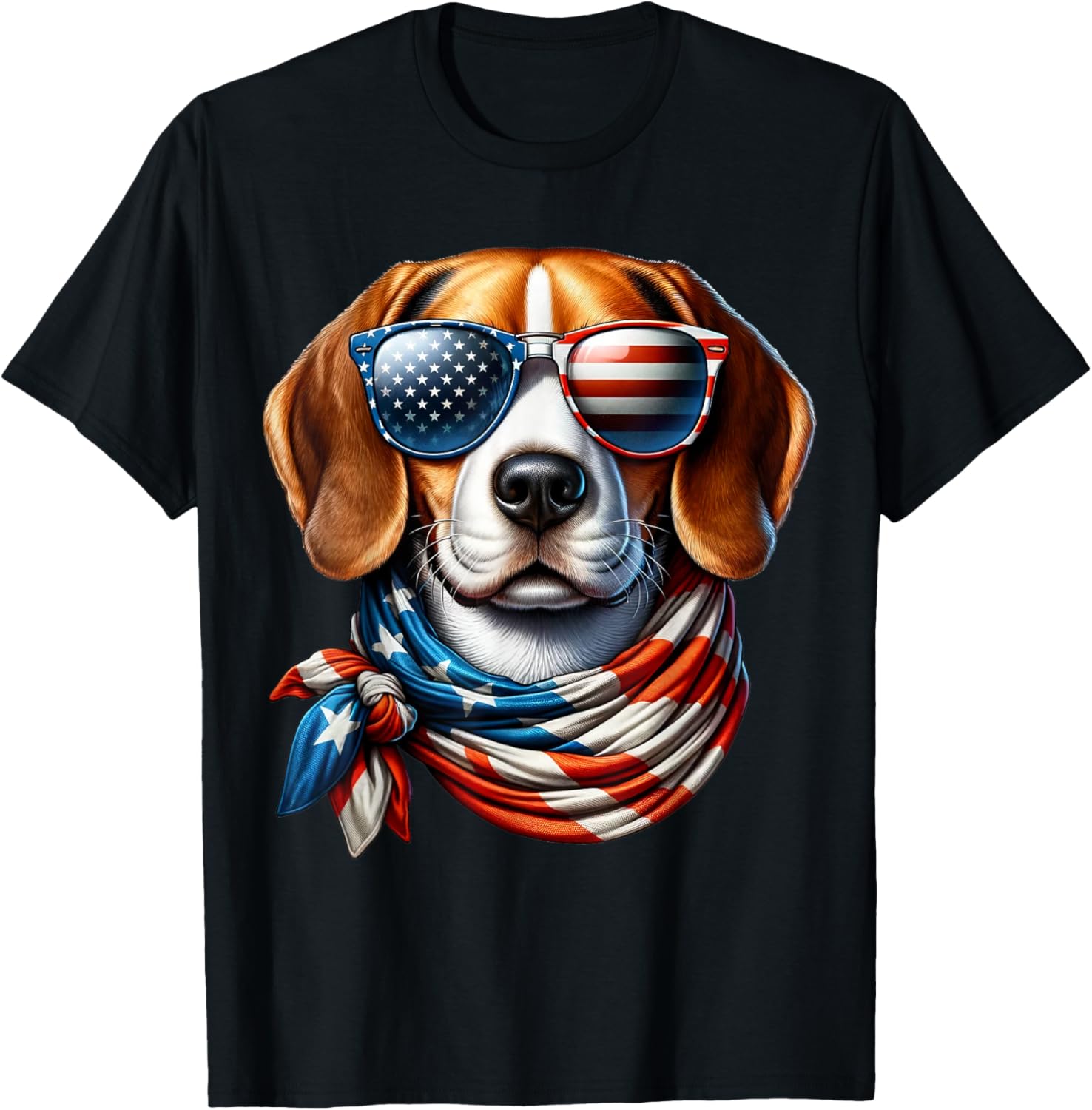 Beagle Wearing USA Flag Sunglasses 4th of July Patriotic Dog T-Shirt