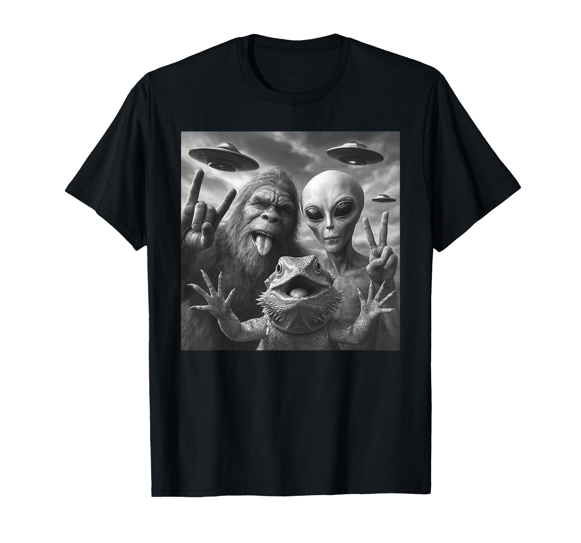 Bearded Dragon Selfie With Bigfoot & Alien Funny UFO T-Shirt
