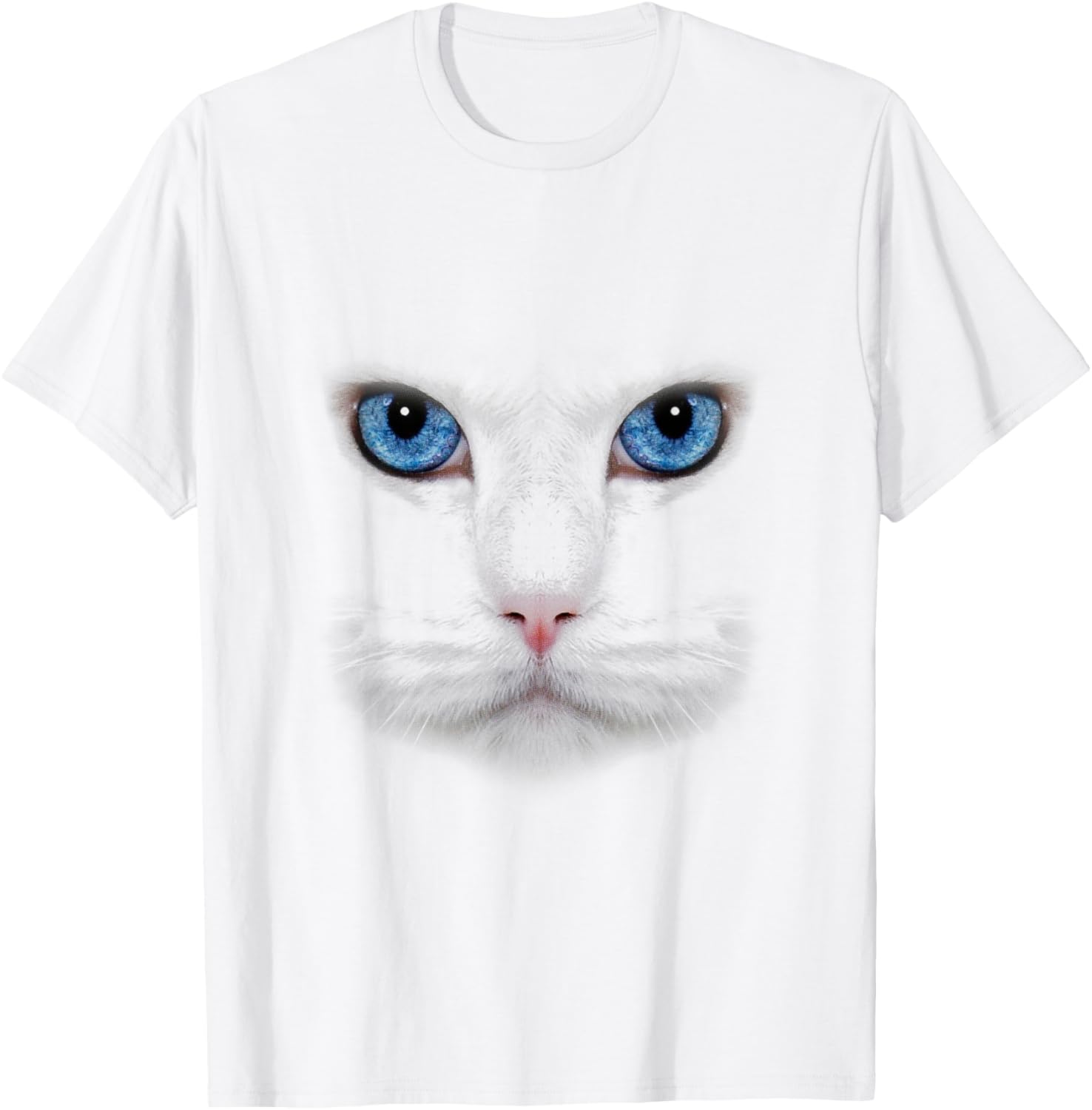 Beautiful White Cat Face With Blue Eyes Cats Lovers T-Shirt
