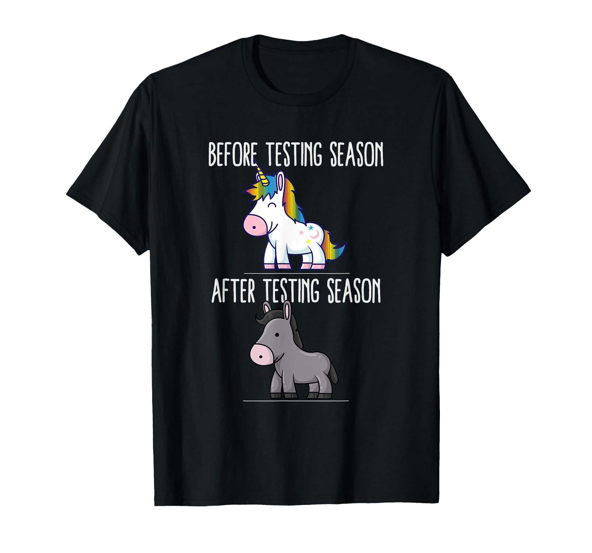 Before After Testing Season Is My Cardio Teacher Unicorn T-Shirt