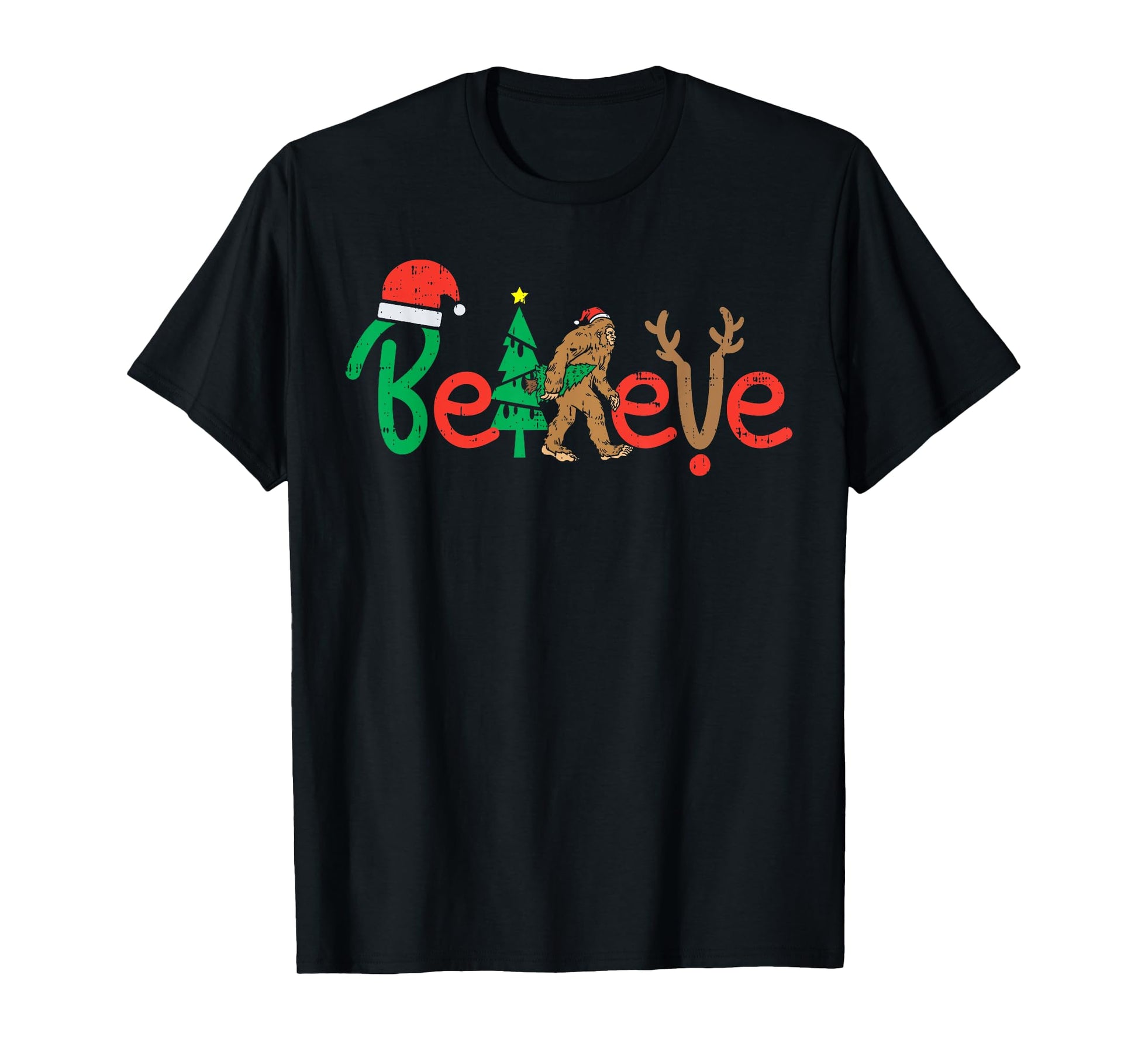 Believe Bigfoot Sasquatch Santa Reindeer Christmas Tree Gift T-Shirt