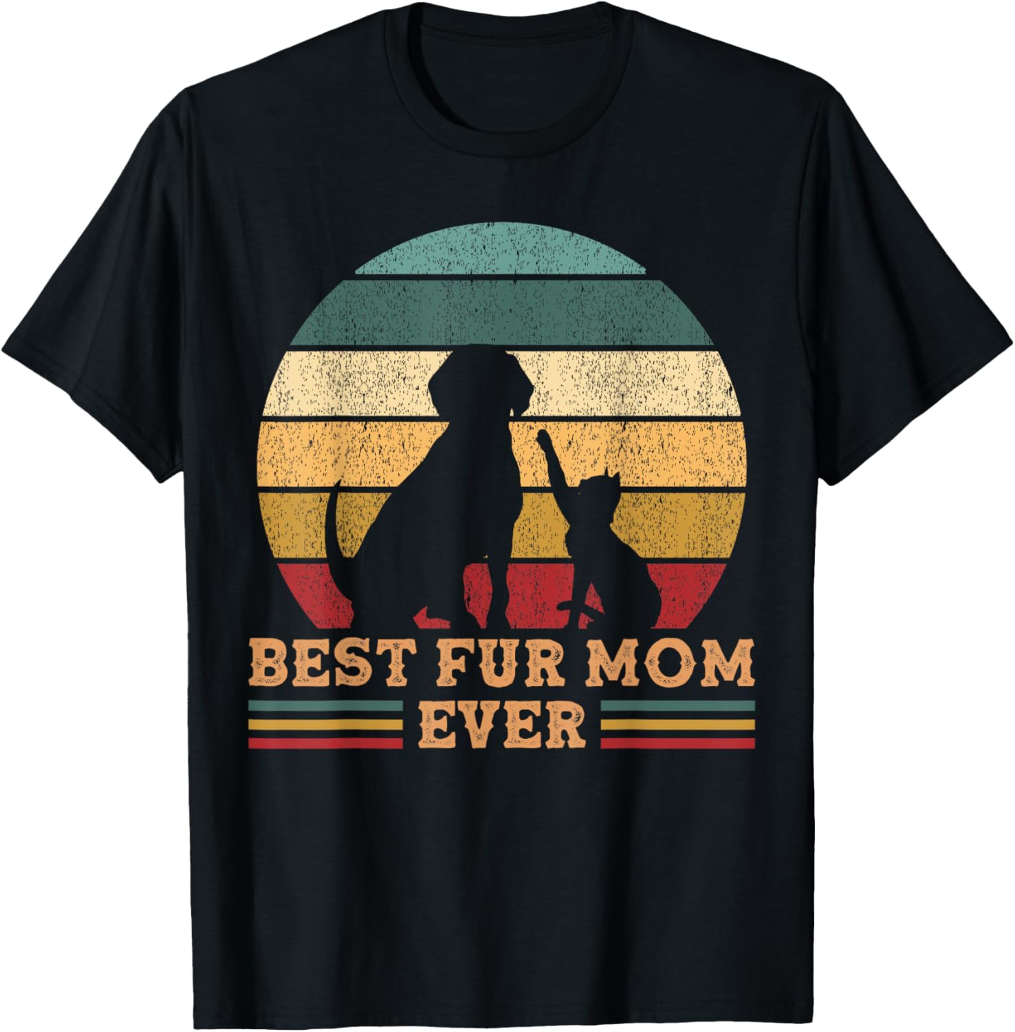 Vintage Best Fur mom Ever Funny Cat And Dog Mom Mama T-Shirt