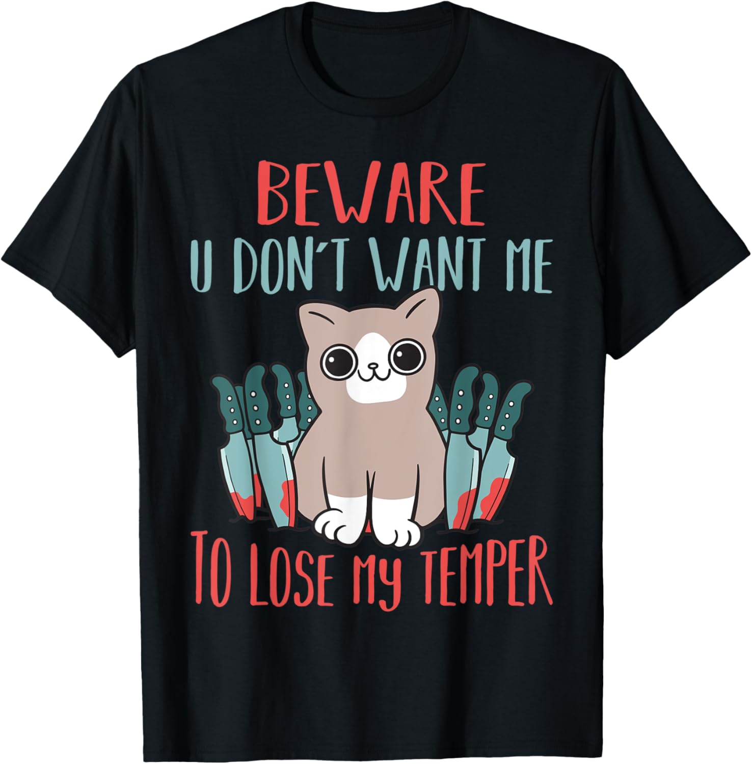 Beware You Dont Want Me To Lose My Temper Crazy Cat T-Shirt