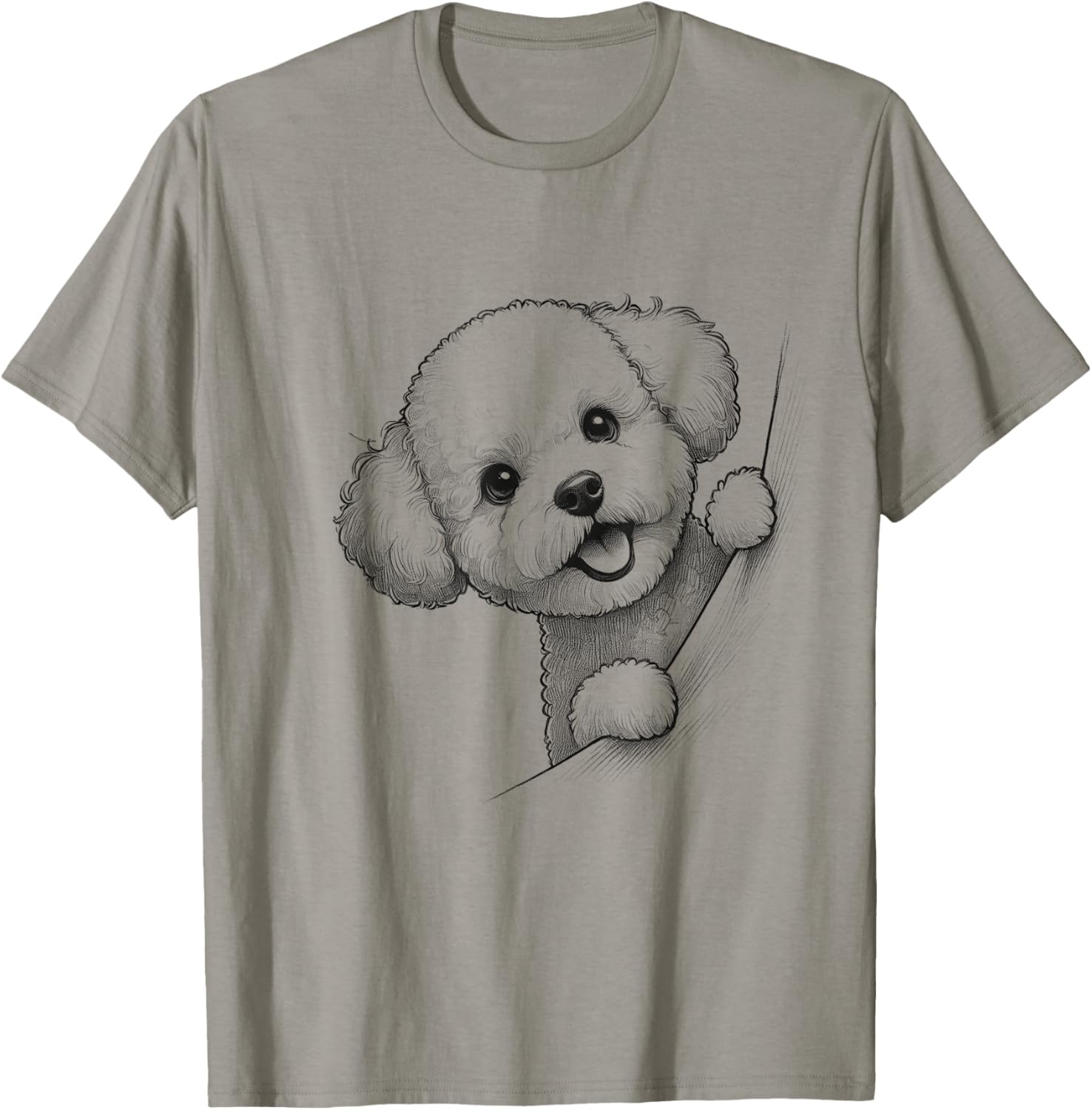 Funny Bichon Frise Peeking Design For Dog Owner T-Shirt