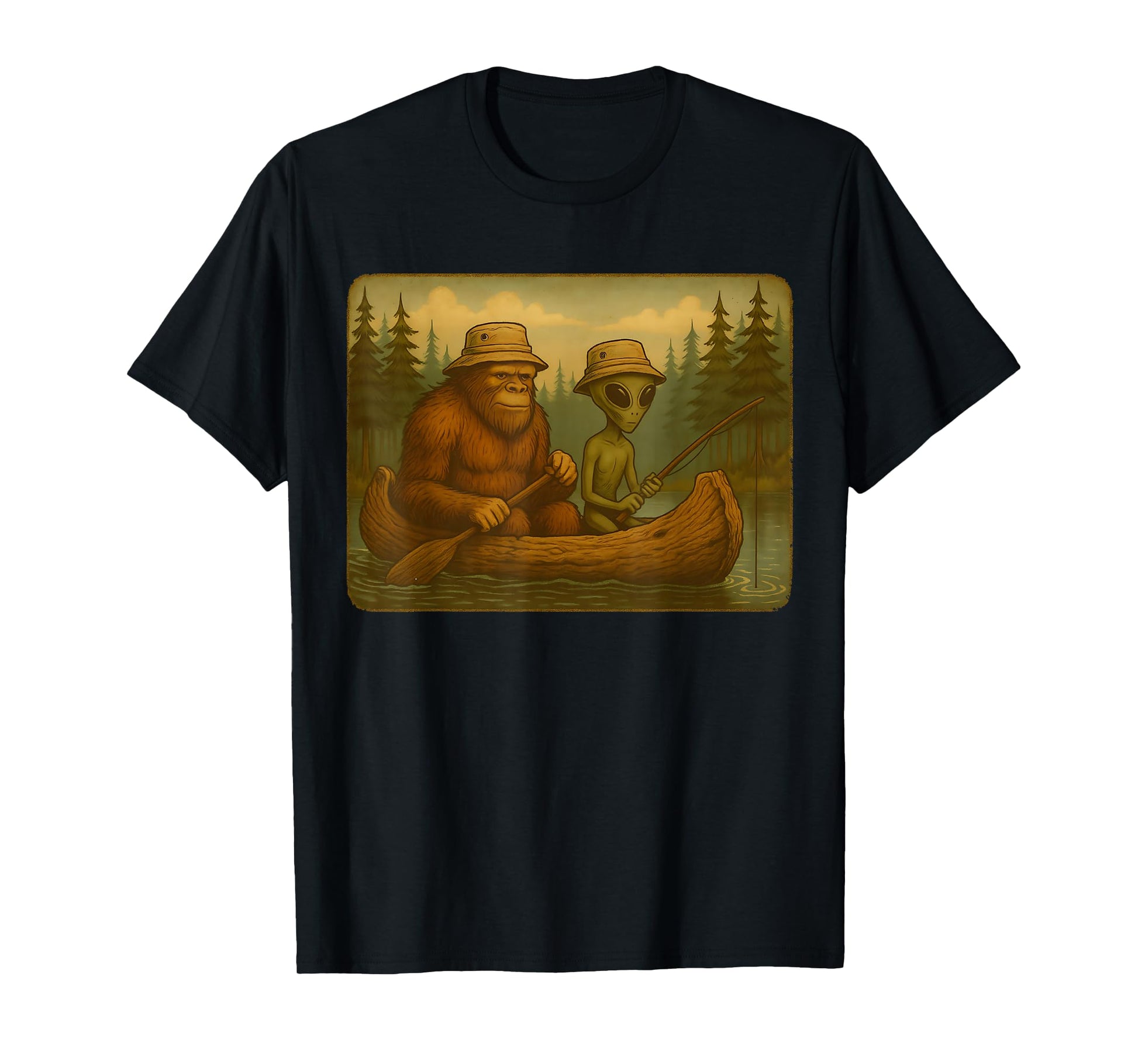 Bigfoot Alien Fishing Design Men Boys Sasquatch Fishing T-Shirt