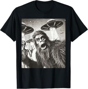 Bigfoot Alien Ufo Selfie Funny Sasquatch Meme Men Women Kids T-Shirt