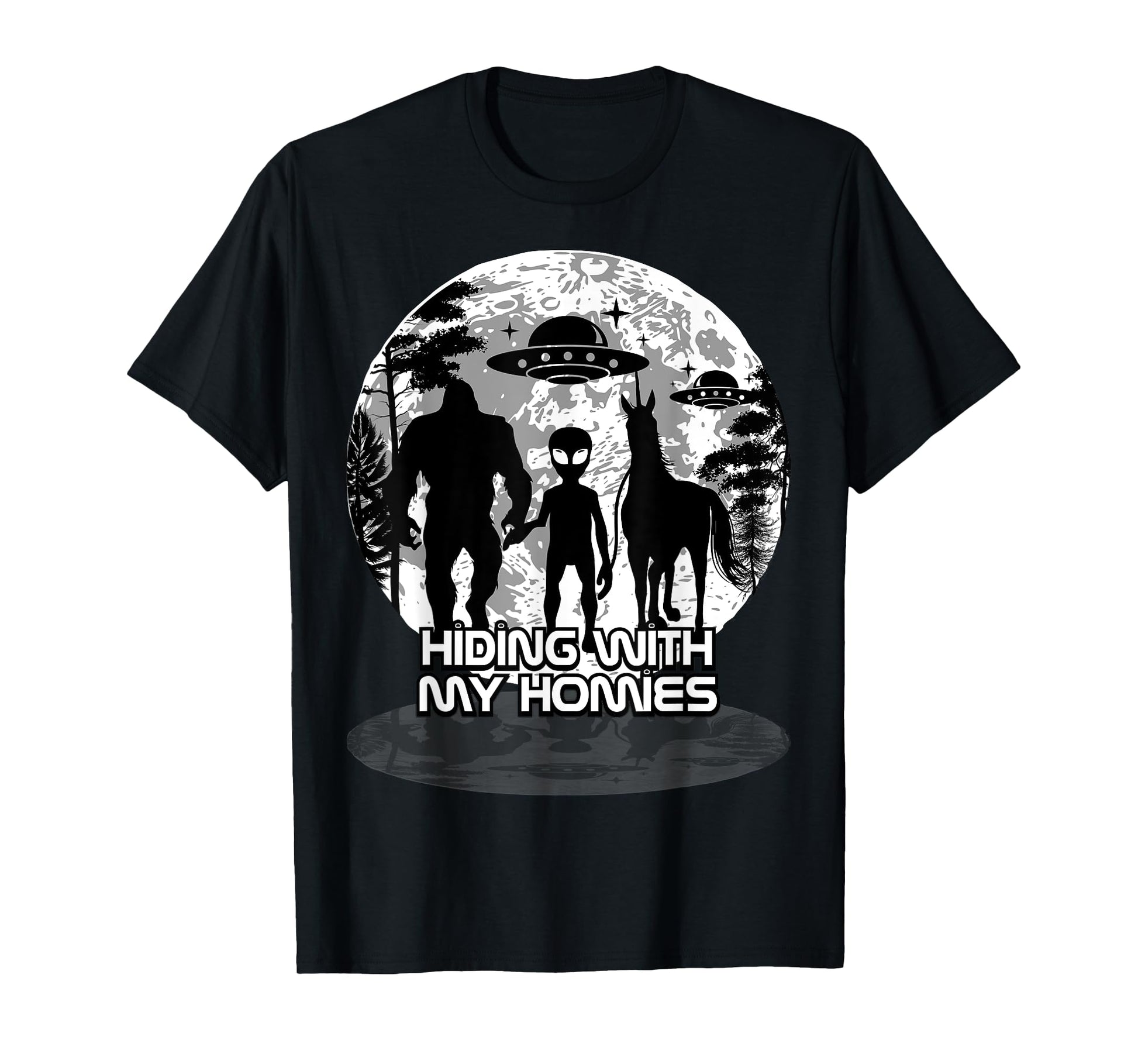 Bigfoot Alien Unicorn UFO Cryptids Hiding with my Homies T-Shirt