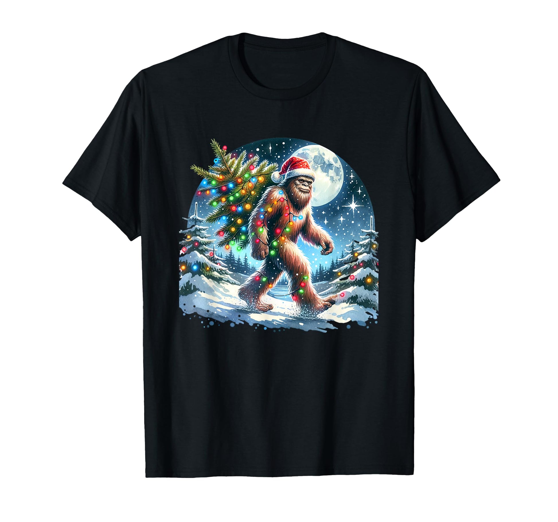 Bigfoot Christmas Holiday Sasquatch Xmas T-Shirt - Bigfoot CHristmas Shirt & Sasquatch Lover Xmas - Unisex-Adults, Unisex-Kids - Black - Small - Short Sleeve - T-Shirt