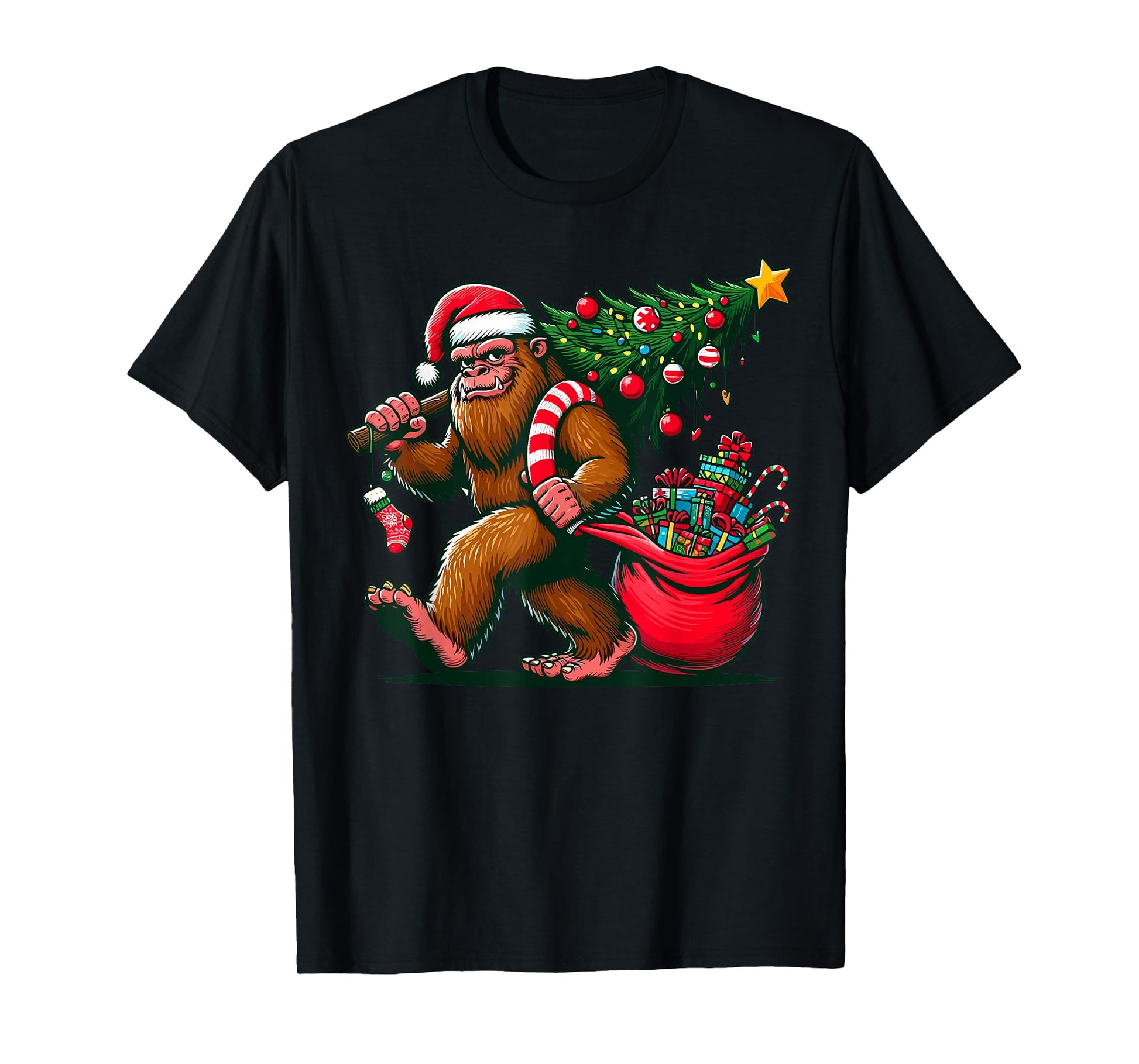 Bigfoot Christmas Tree Lights Xmas Sasquatch T-Shirt - Unisex-Adults, Kids - Blue - Small - Short Sleeve - T-Shirt - Cartoon Pattern - Winter