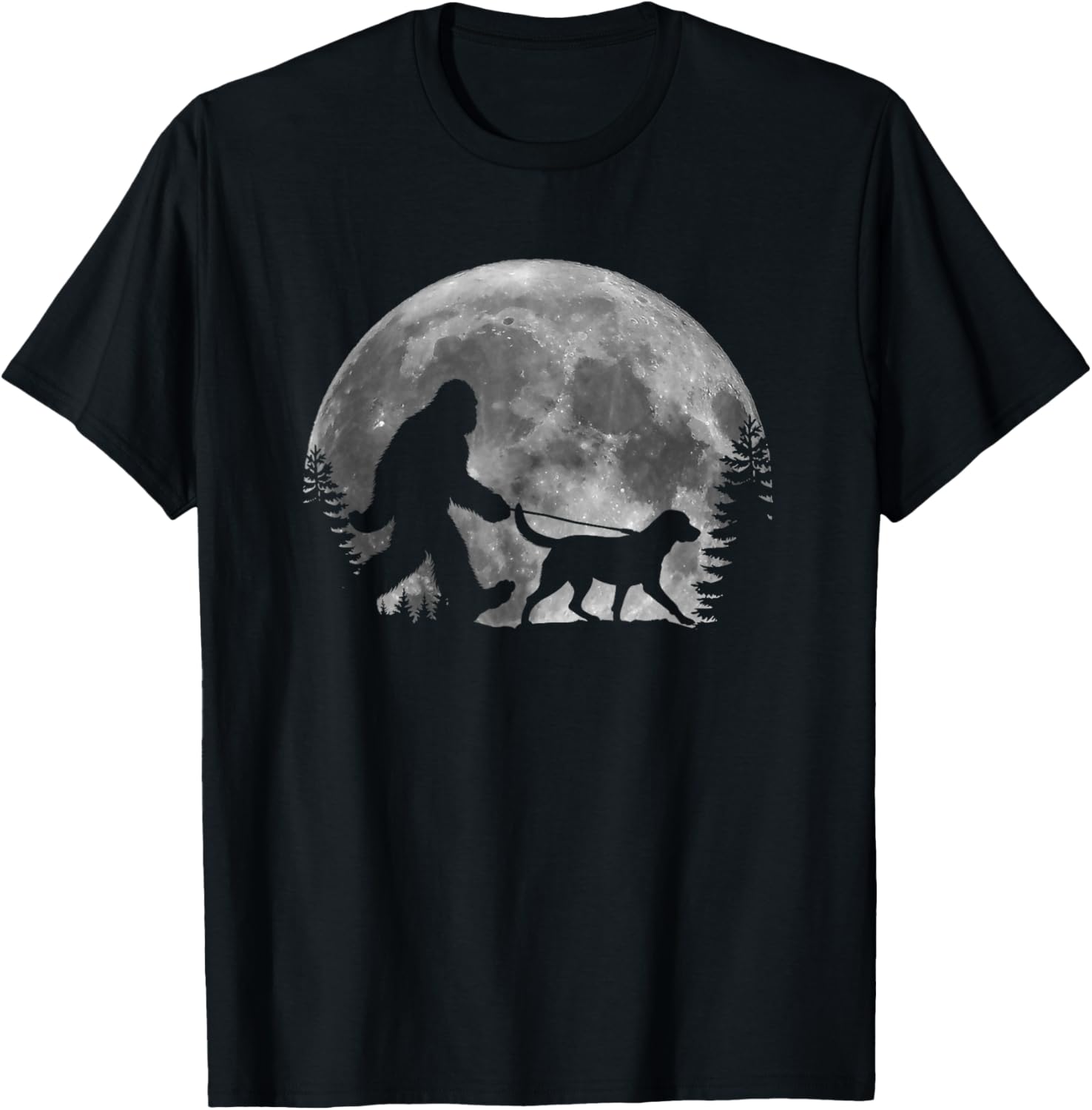 Bigfoot Walking a Dog Labrador Retriever Dad Moon Halloween T-Shirt