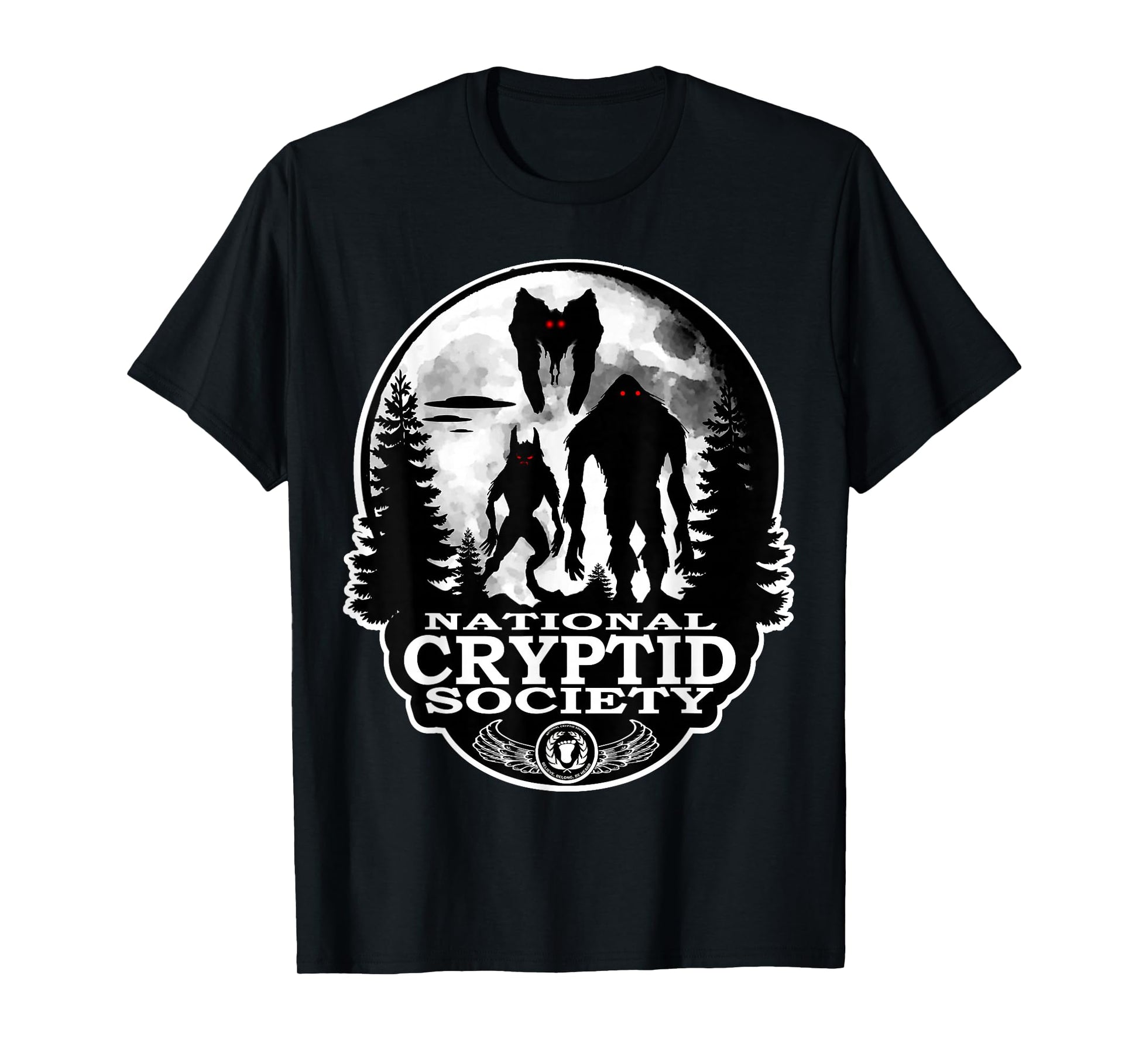 Bigfoot Dogman Mothman UFO; National Cryptid Society Logo T-Shirt