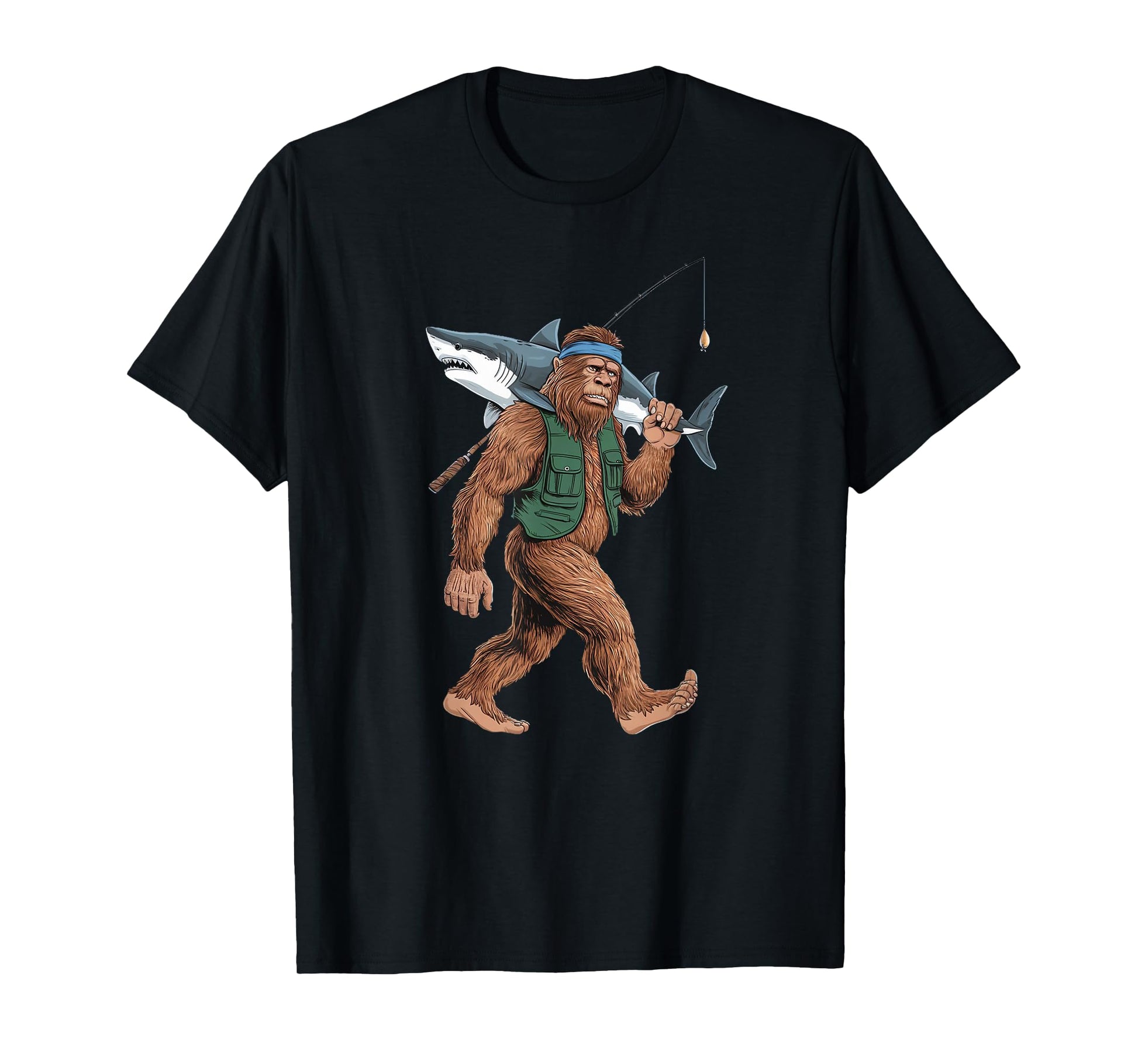 Bigfoot Fisherman Shirt - Funny Sasquatch With Shark T-Shirt