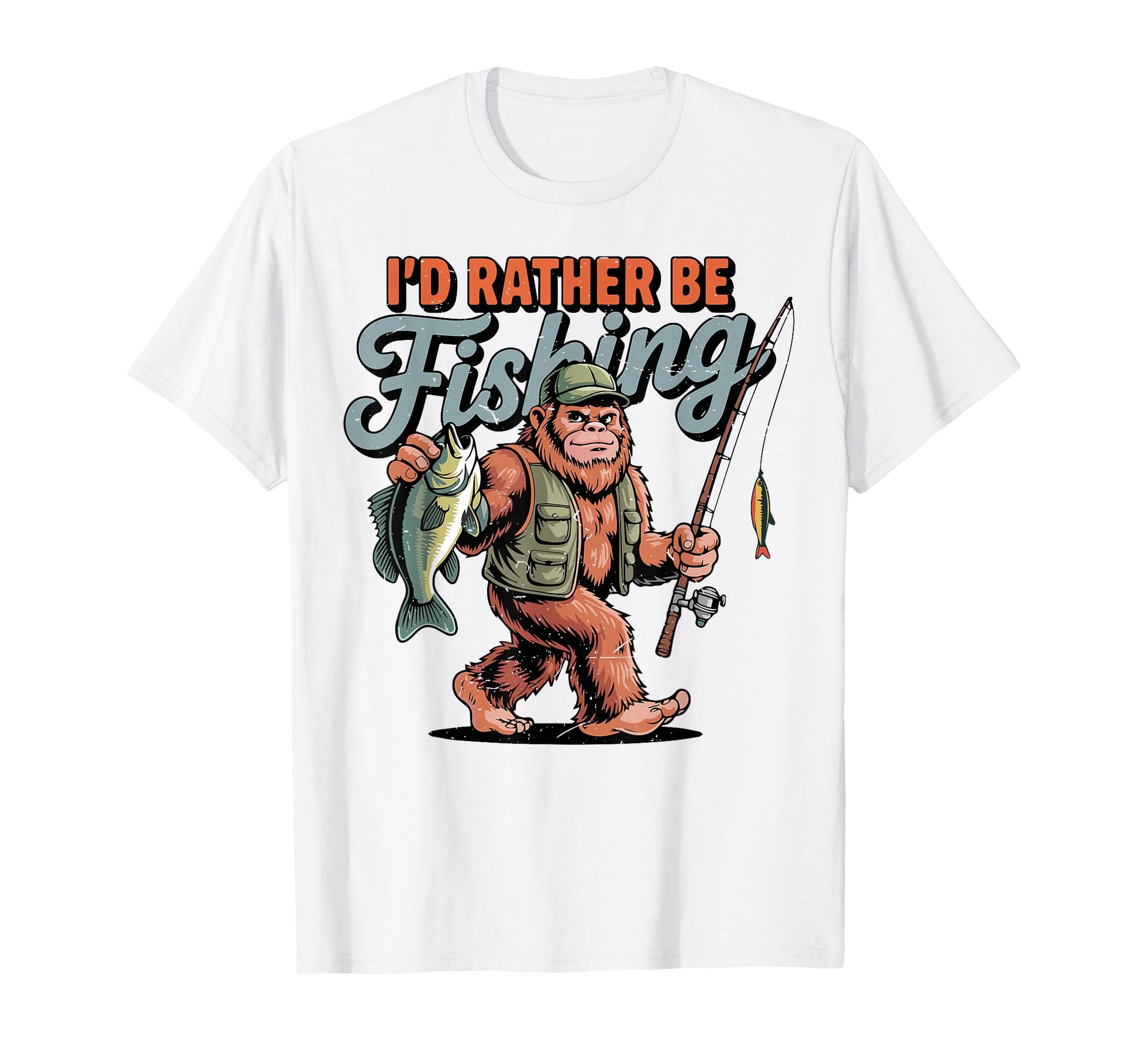 Bigfoot I'd Rather Be Fishing Sasquatch Bass Funny Men Boy T-Shirt