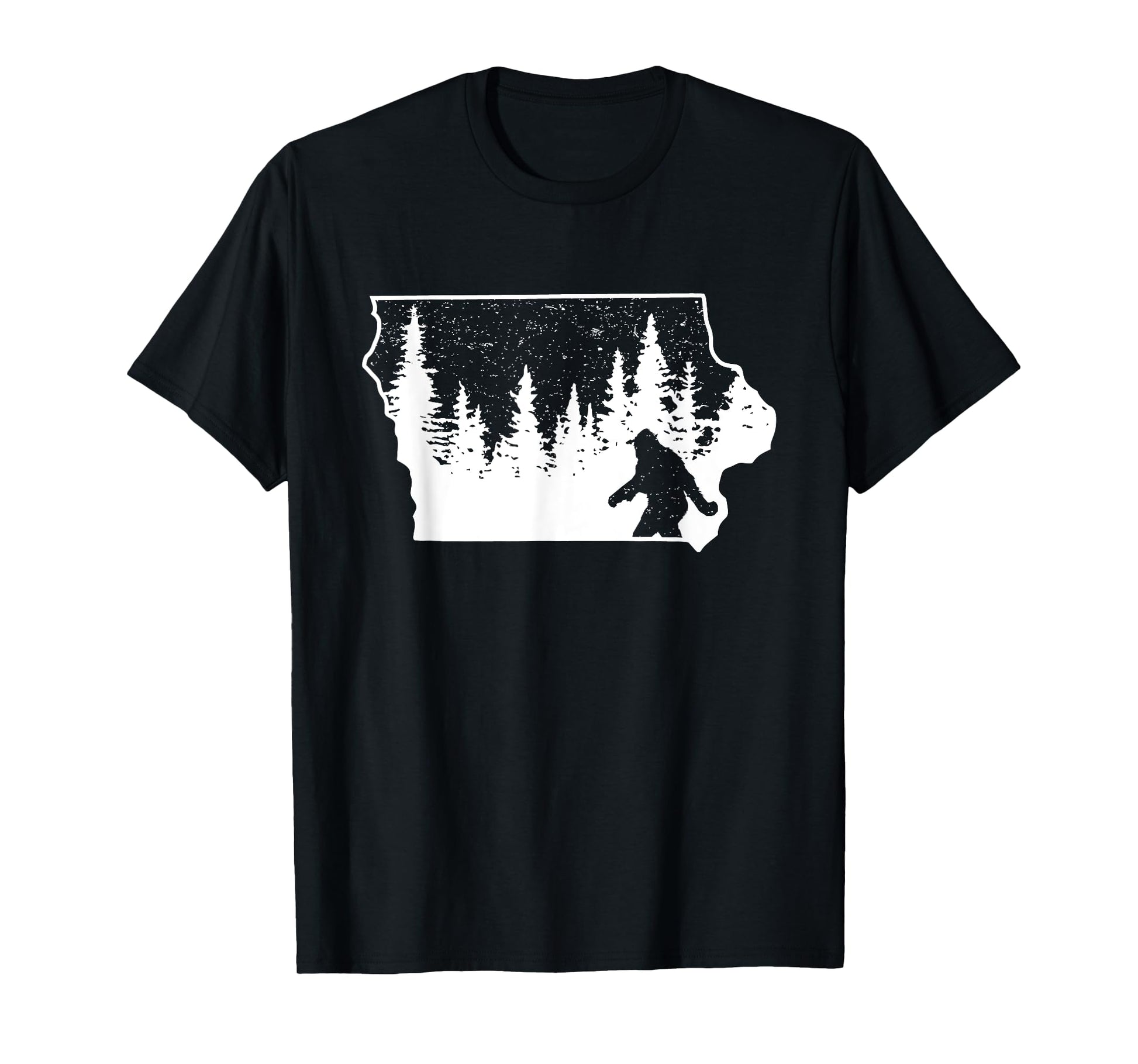 Bigfoot Iowa Pride Funny Sasquatch Love Iowa Map Distressed T-Shirt