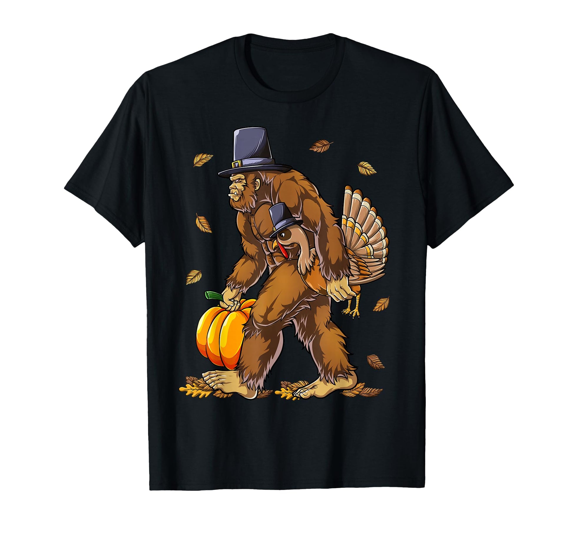 Bigfoot Pilgrim Turkey Pumpkin Thanksgiving Day Boys Men T-Shirt