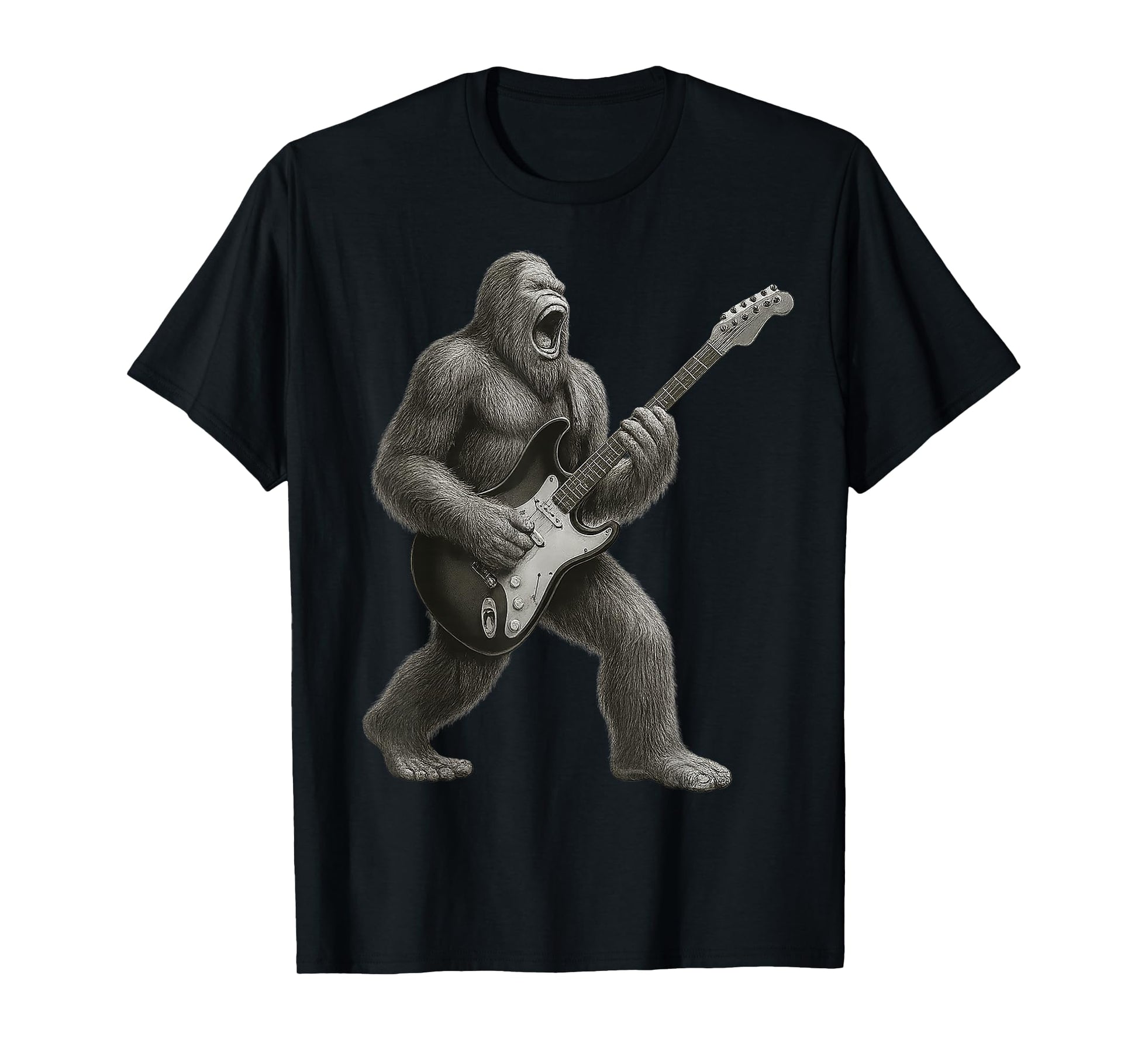 Bigfoot Playing Guitar Rock and Roll Gift Men Women Boy Girl T-Shirt