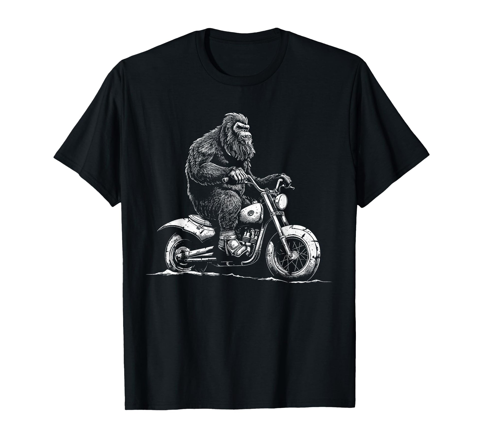 Bigfoot Riding A Motorcycle Bike Funny Sasquatch Men Women T-Shirt