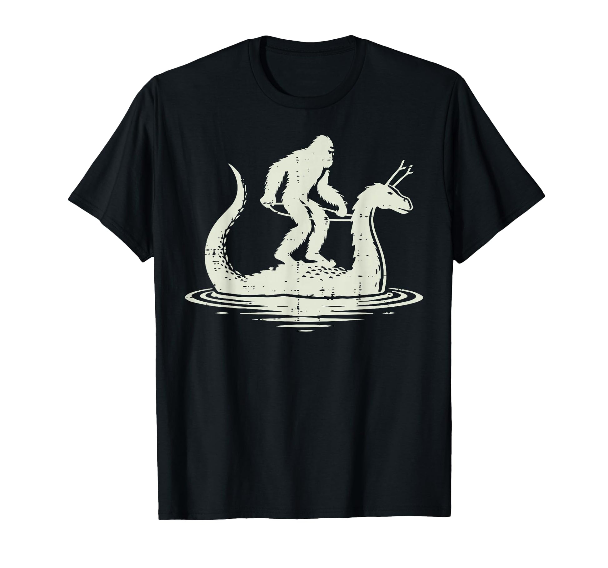 Bigfoot Riding Loch Ness Fun Sasquatch Nessie Women Men Kids T-Shirt