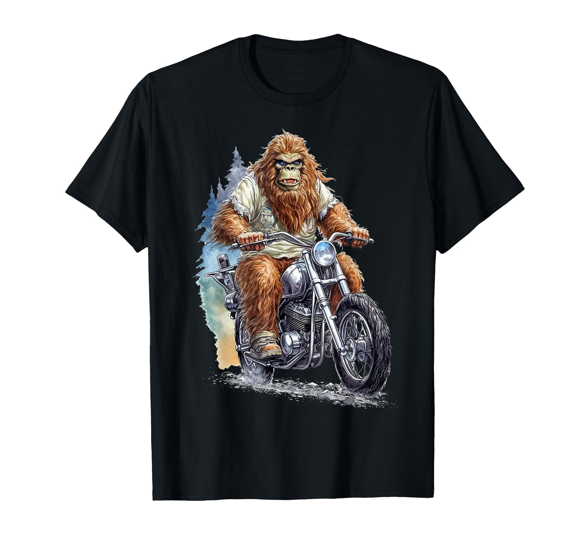 Bigfoot Riding Motorcycle Bike Funny Bigfoot Sasquatch Biker T-Shirt