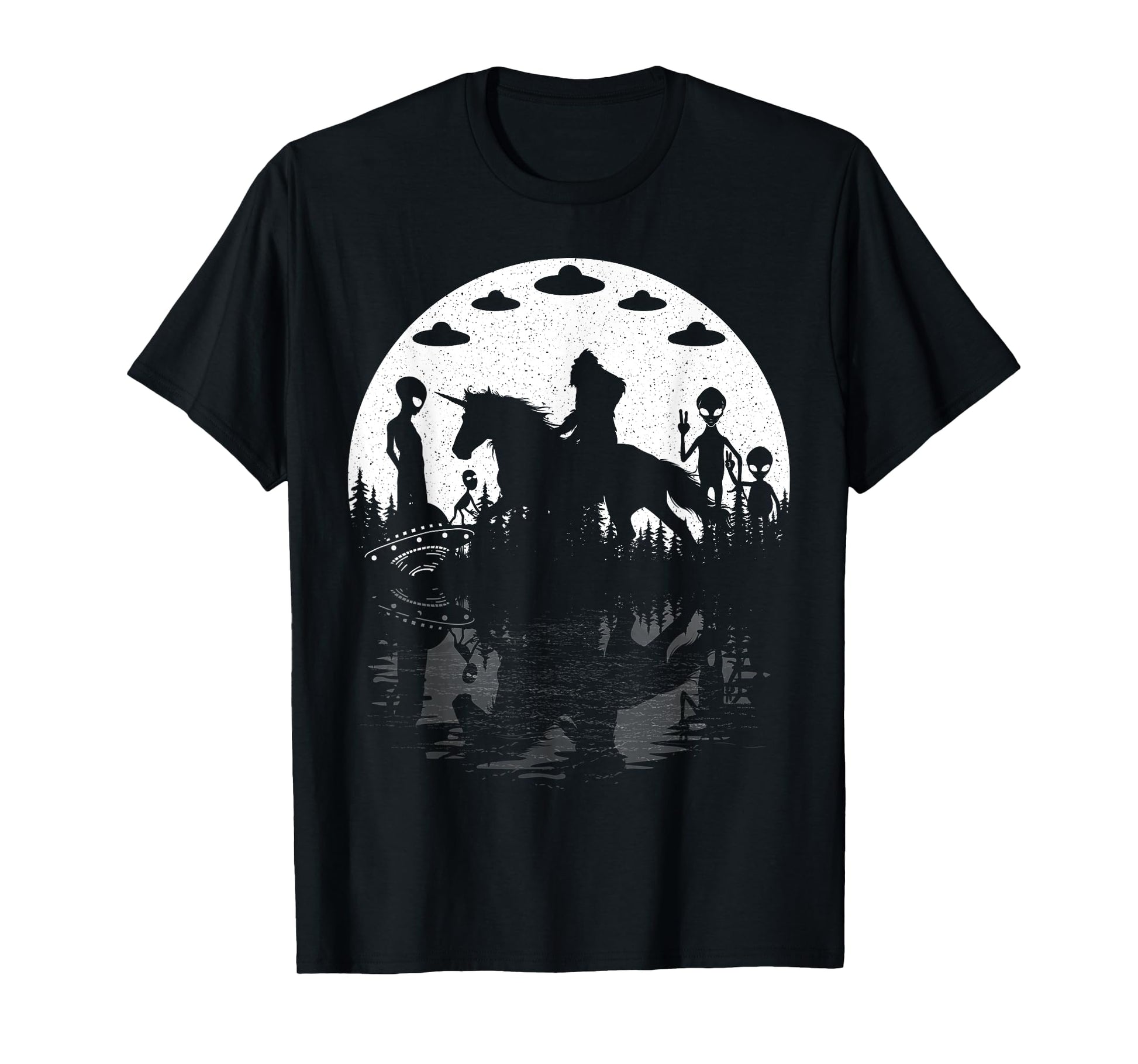 Bigfoot Riding Unicorn! Funny Sasquatch Ufo Cryptid Aliens T-Shirt