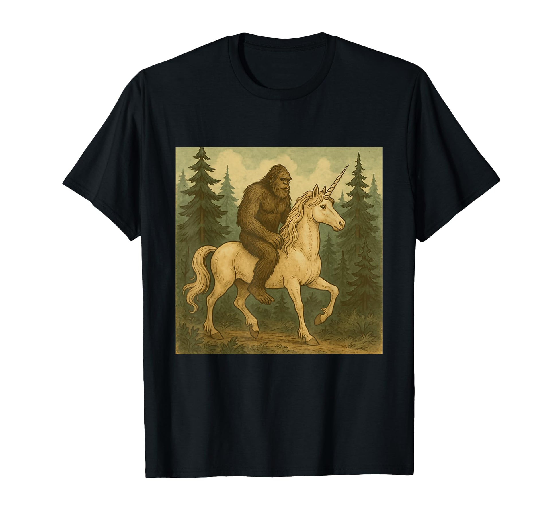 Bigfoot Riding Unicorn Men Women Kids Fun T-Shirt