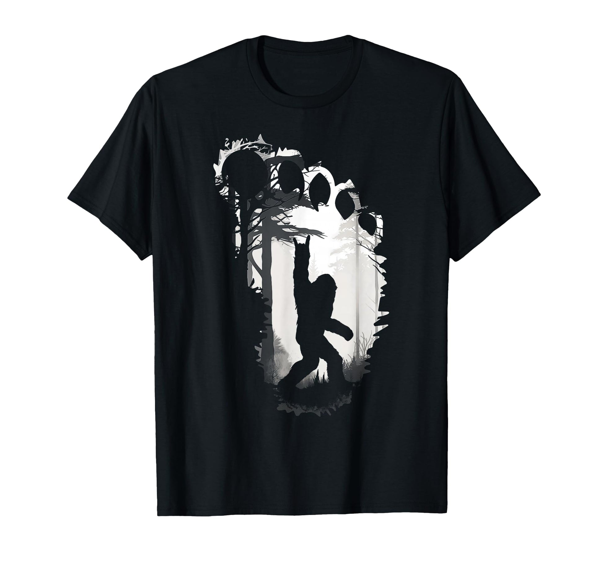 Bigfoot Rock On in The Forest Funny Sasquatch Footprint Meme T-Shirt
