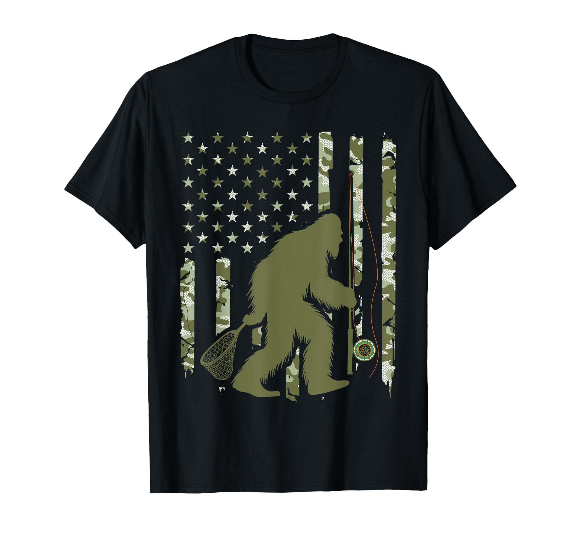 Bigfoot Sasquatch Fly Fishing American Flag Camo Vintage T-Shirt