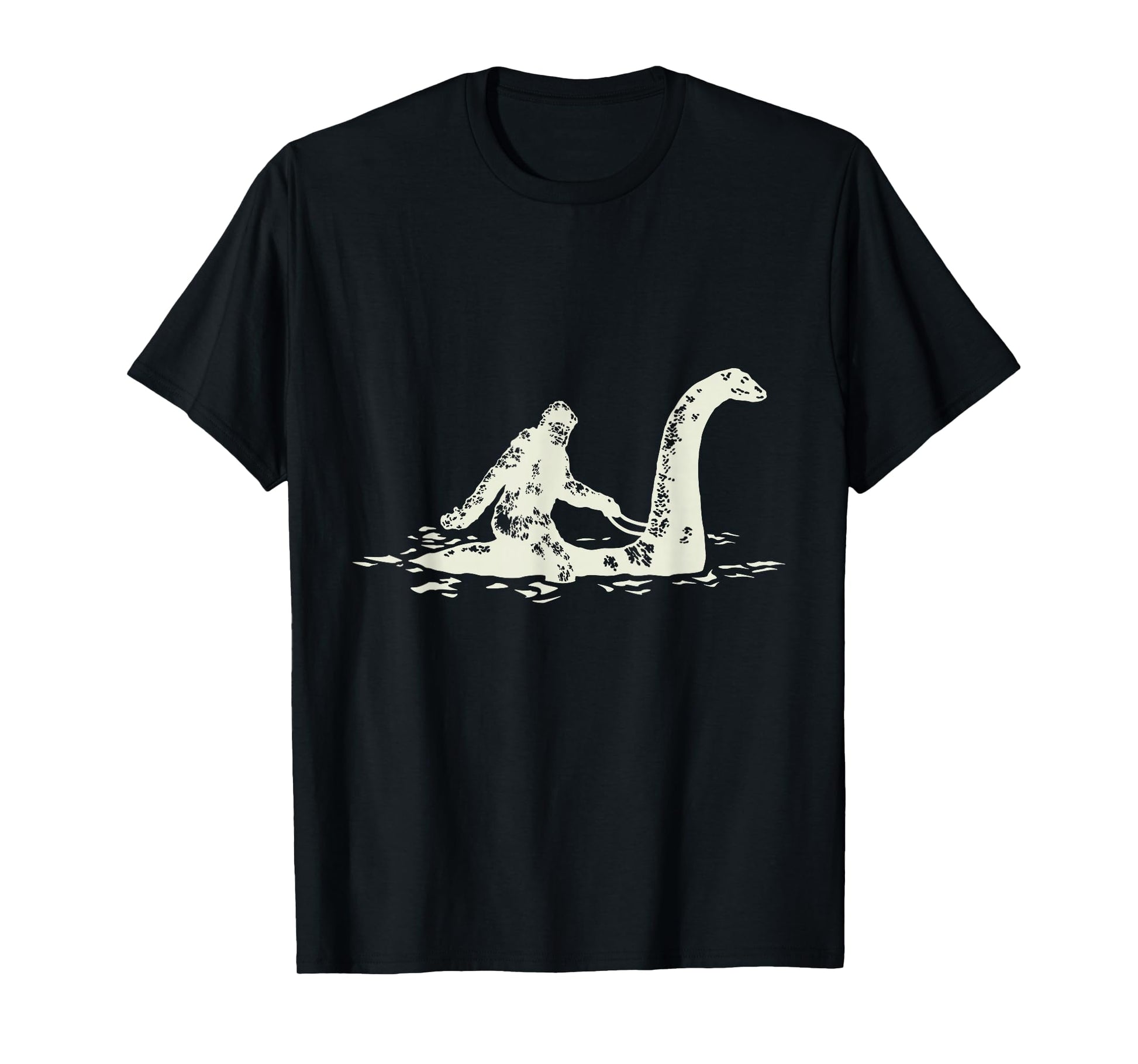 Bigfoot Sasquatch Riding The Loch Ness Monster Funny,Short Sleeve T-Shirt