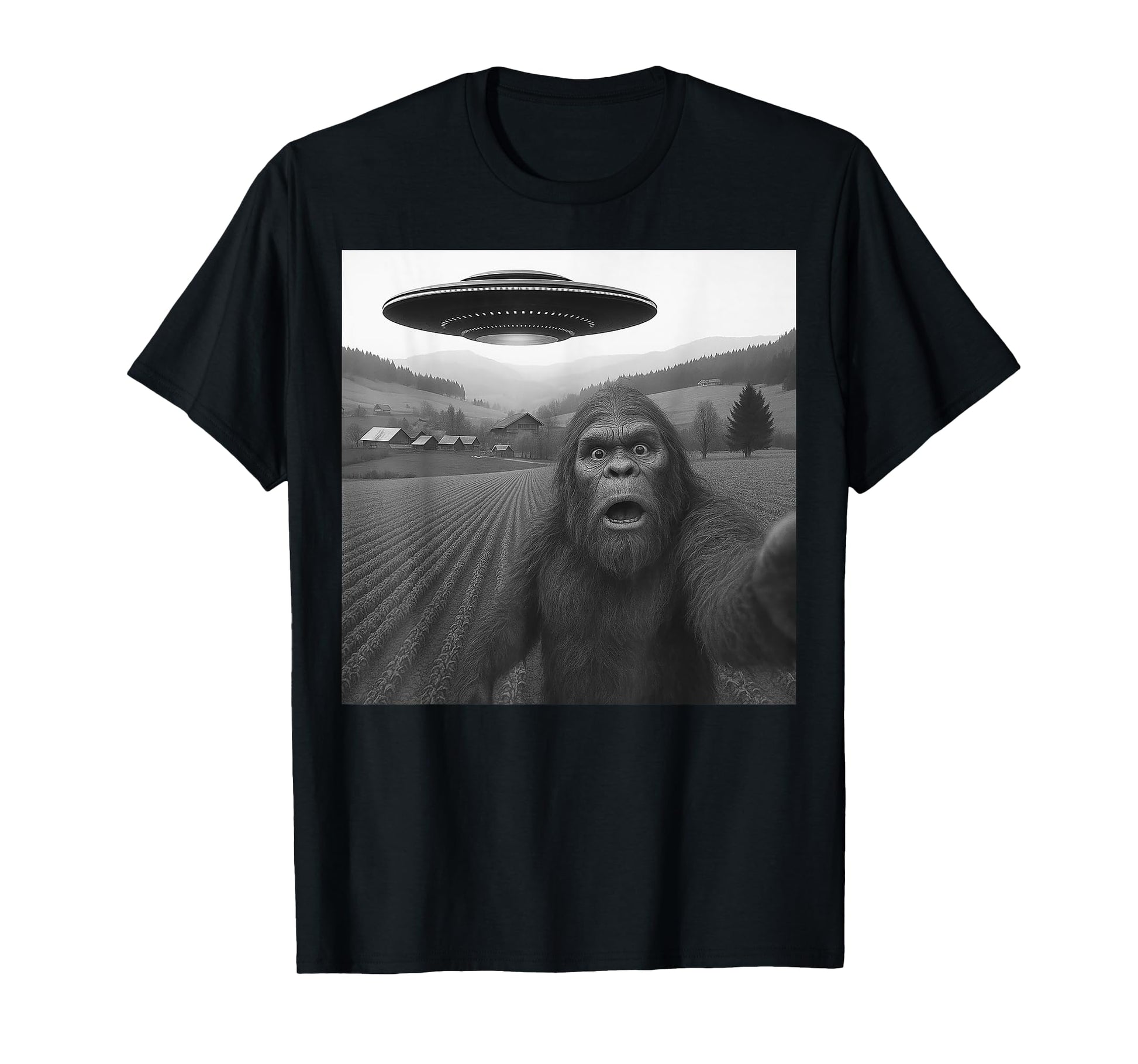 Bigfoot Selfie with Alien UFO Funny Gifts for Men Women Kid T-Shirt