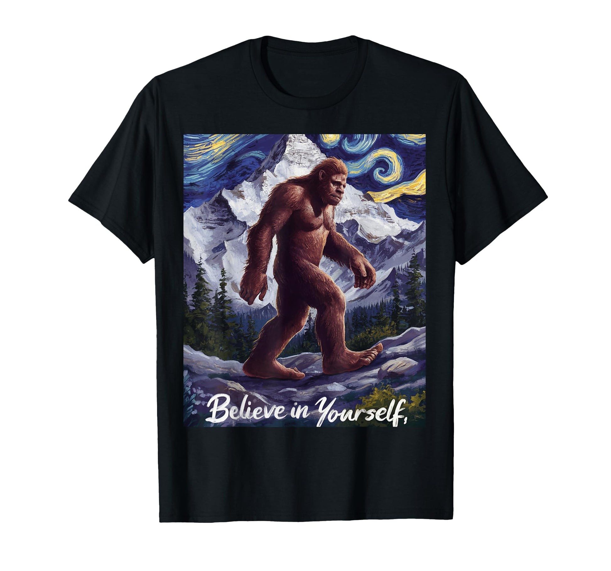 Bigfoot Starry Night Van Gogh Believe in Yourself Funny Gift T-Shirt