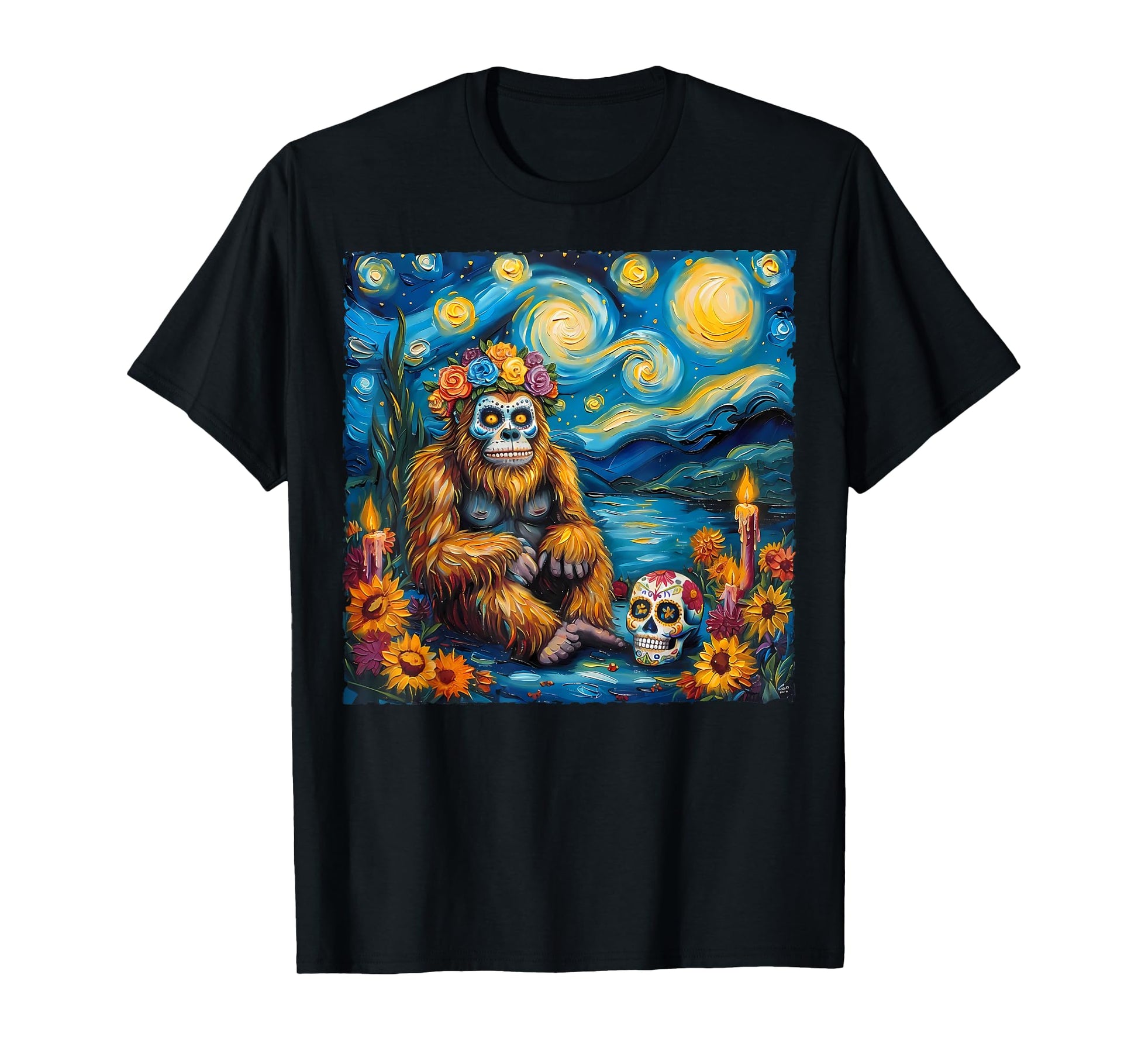 Bigfoot Van Gogh Style The Starry Night Day Of Dead Funny T-Shirt