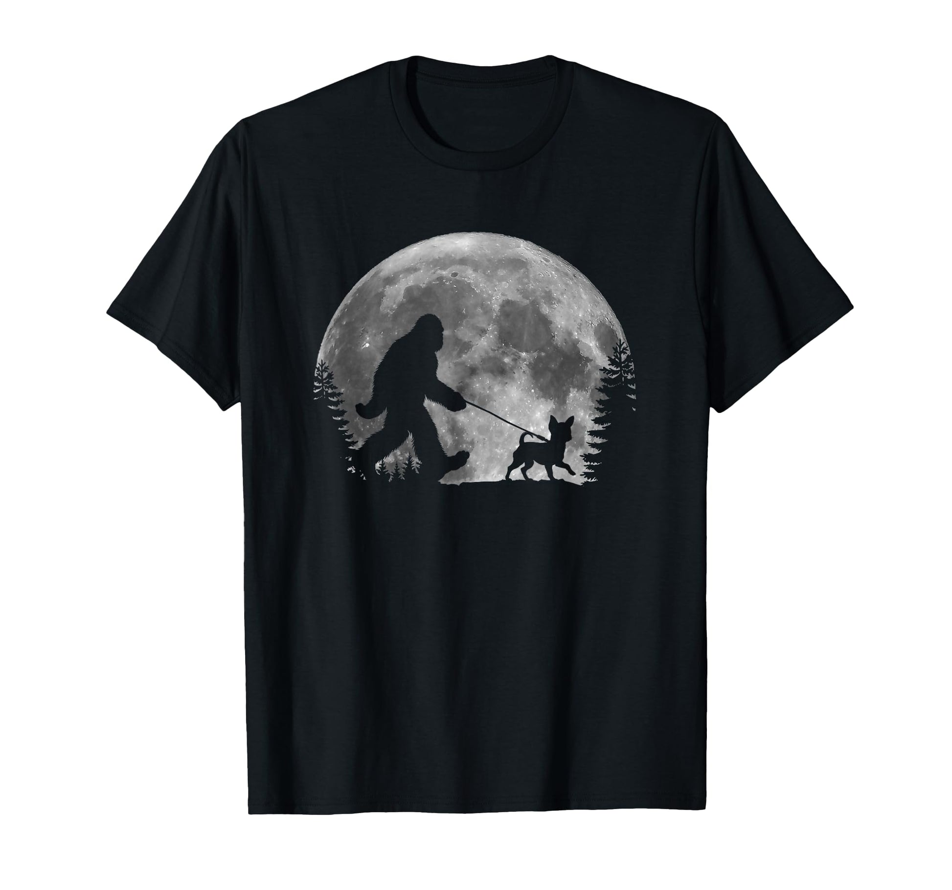 Bigfoot Walking a Dog Funny Chihuahua Lovers Moon Halloween Men Women Kids T-Shirt