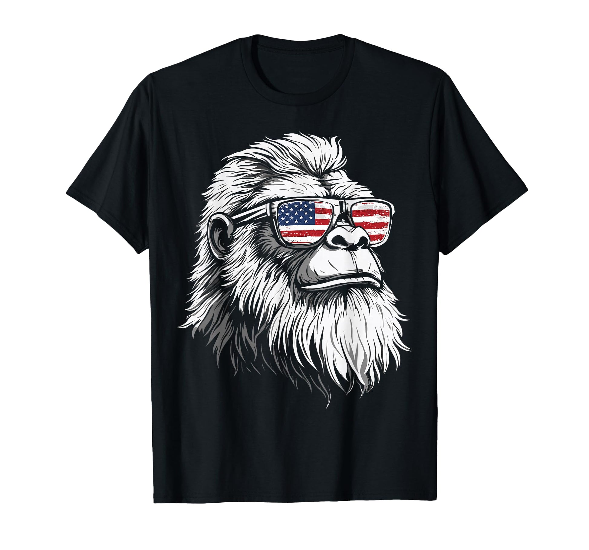 Bigfoot With Sunglasses USA Flag T-Shirt