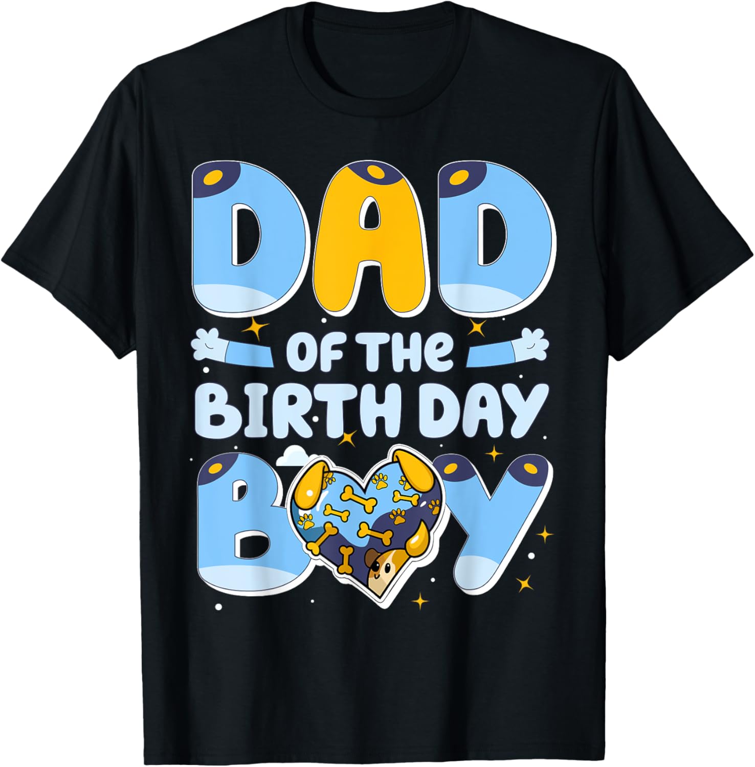 Dad Of The Birthday Boy Funny Blue Dog Family Matching T-Shirt