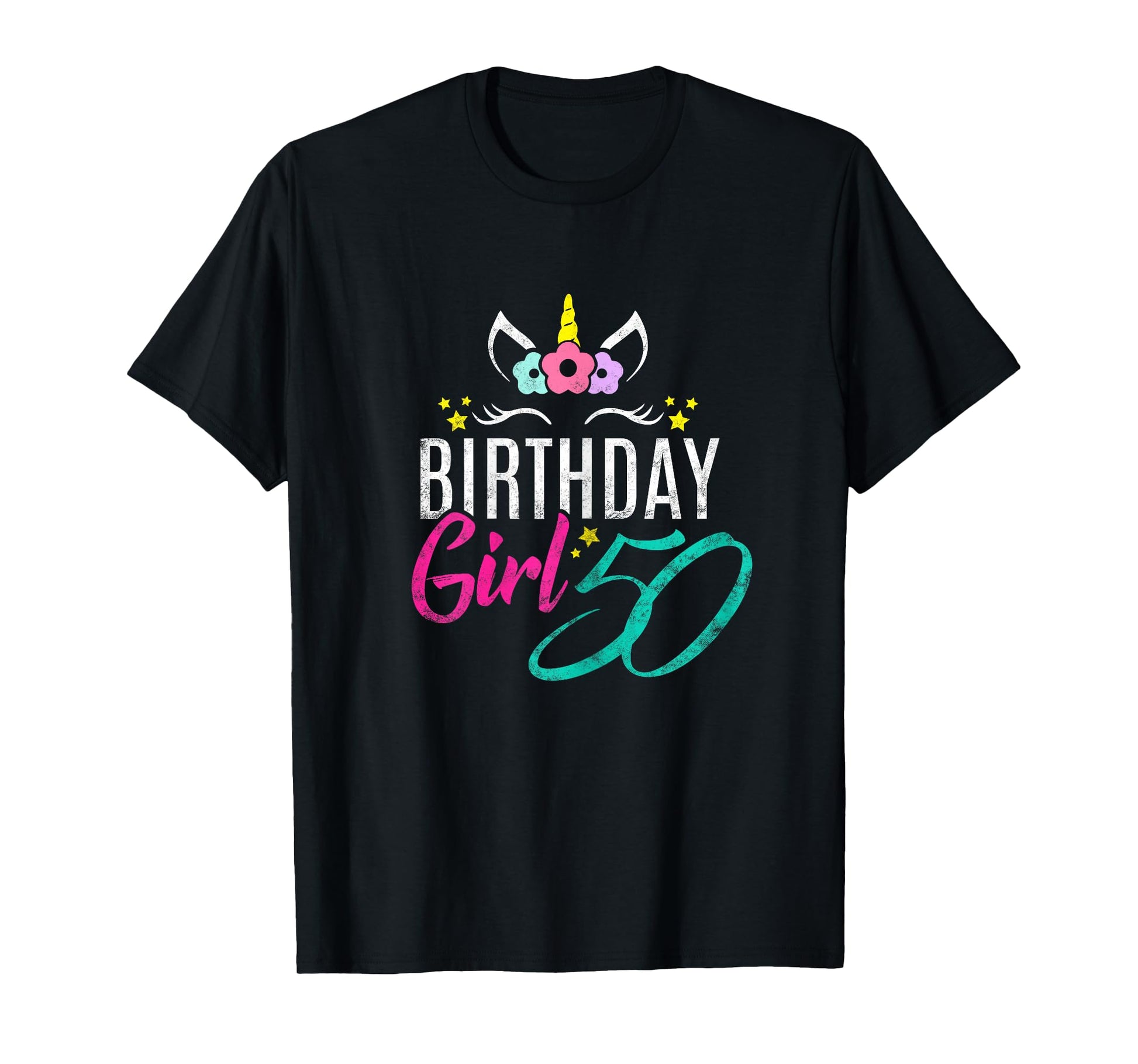 Birthday Girl 50 Year Old Gift Cute Unicorn Face 50th Bday T-Shirt