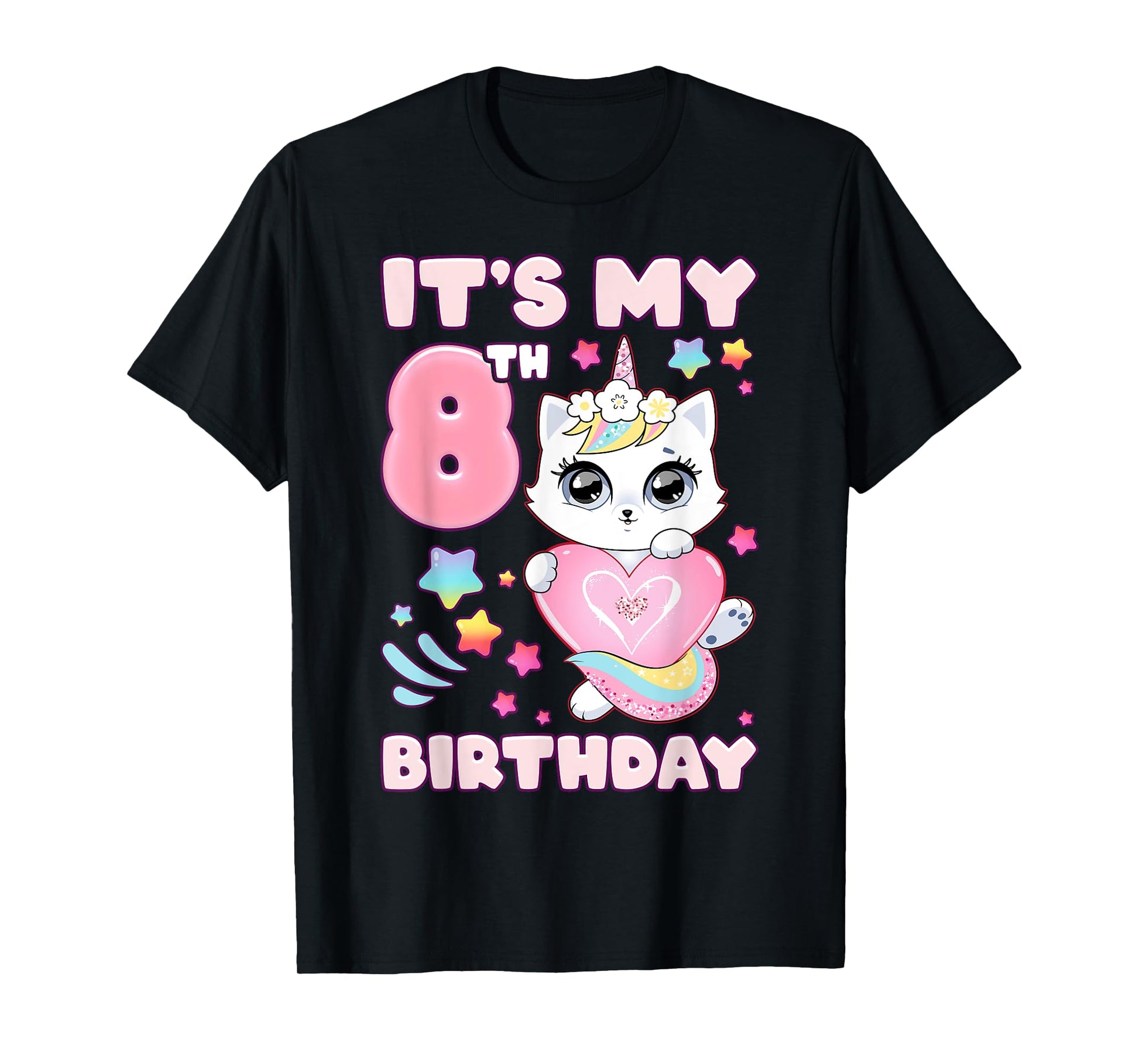 Birthday girl 8 years old cat unicorn 8th birthday T-Shirt