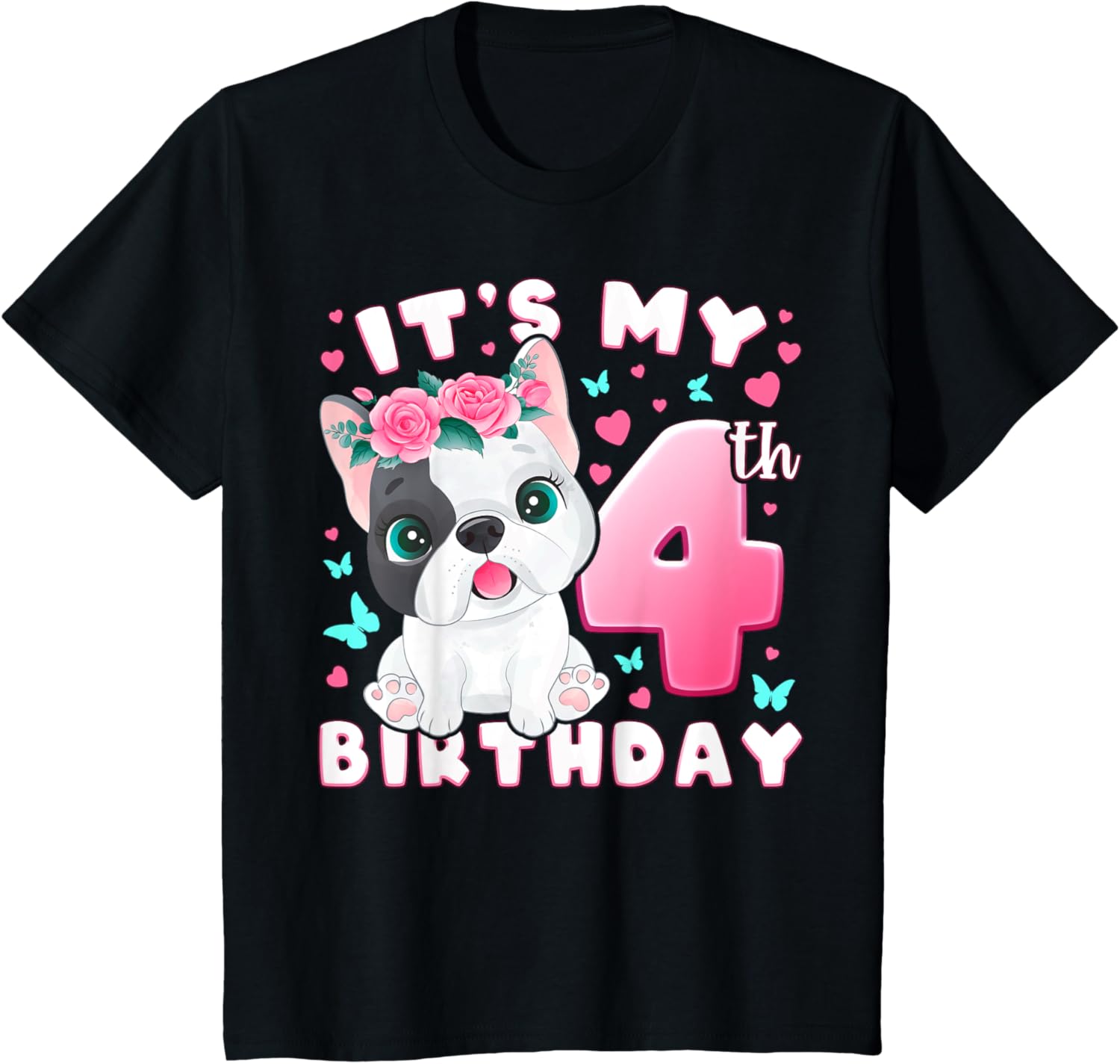 Kids 4th Birthday, Girl 4 Year, Dog, Puppy, Number 4 T-Shirt
