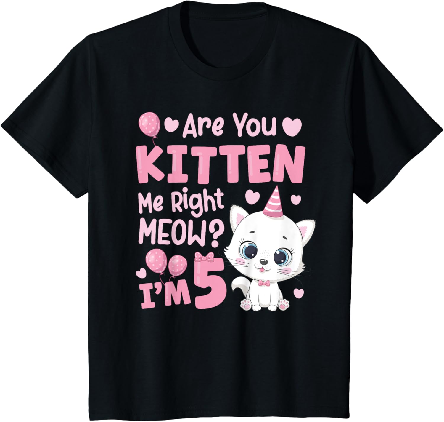Kids 5th Cat Birthday Party Five Year Old Girl Kitty Birthday T-Shirt
