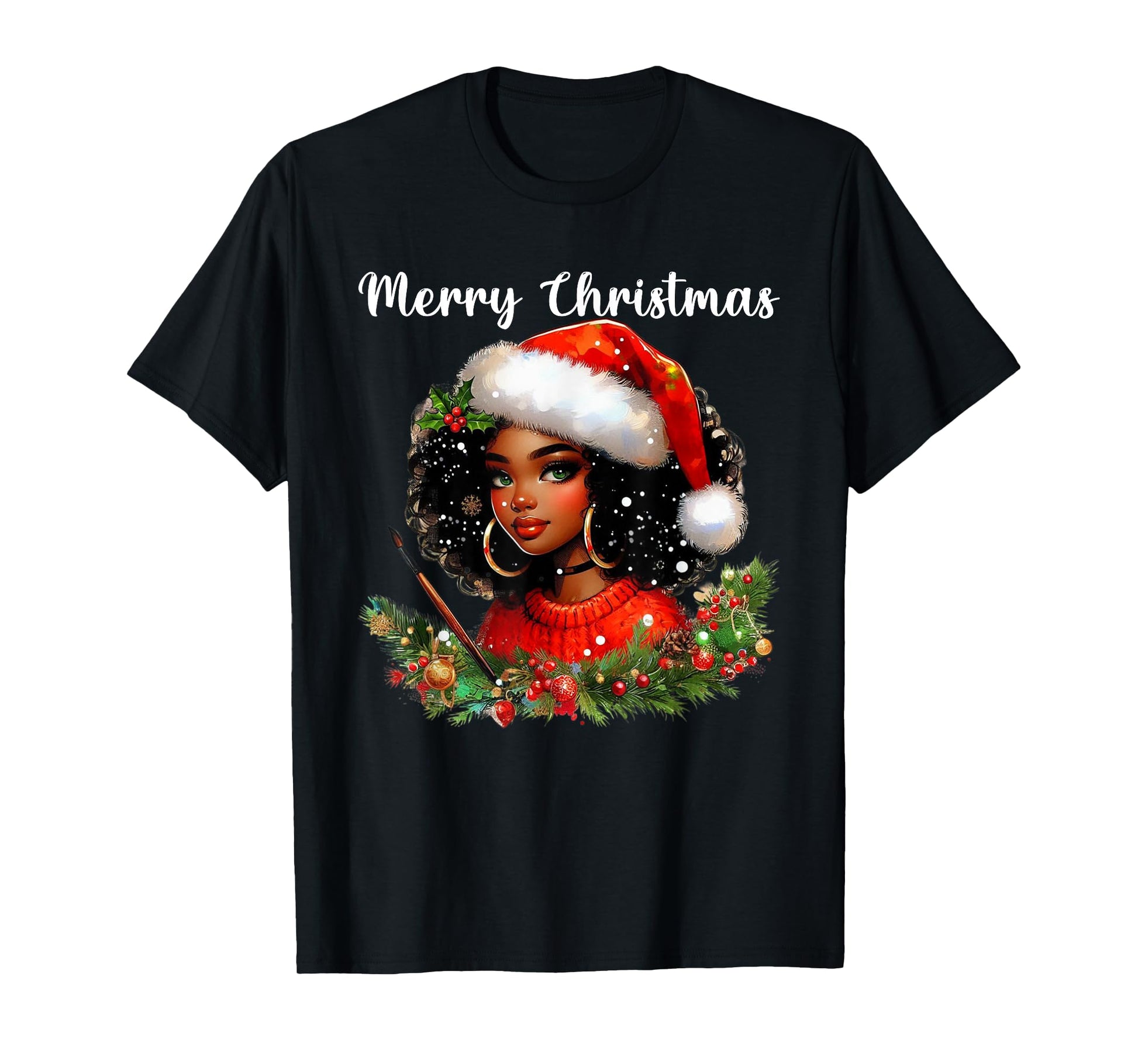 Black African Girl Merry Christmas American Melanin Santa T-Shirt