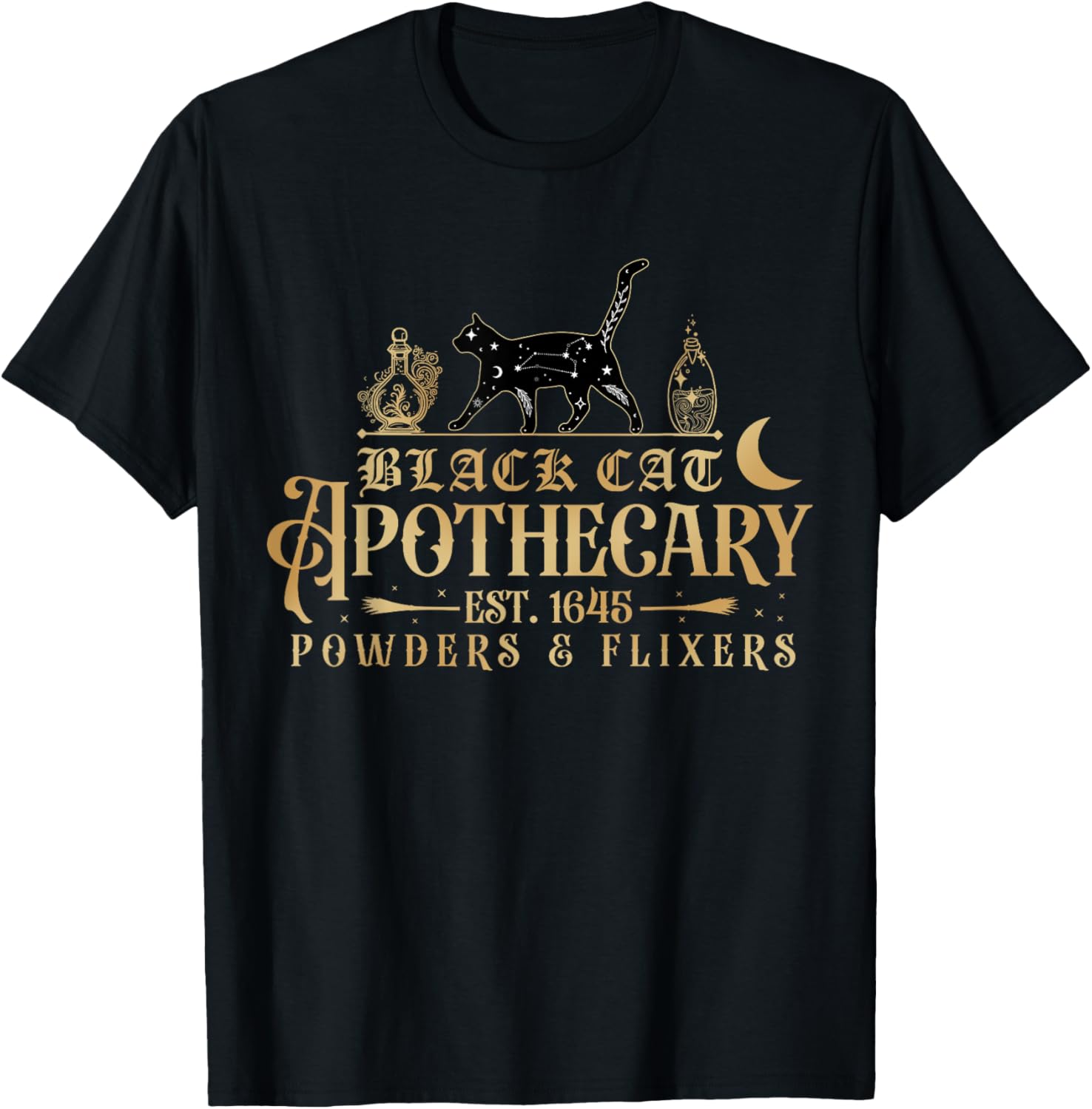 Retro Black Cat Apothecary Celestial Boho Spooky Halloween T-Shirt