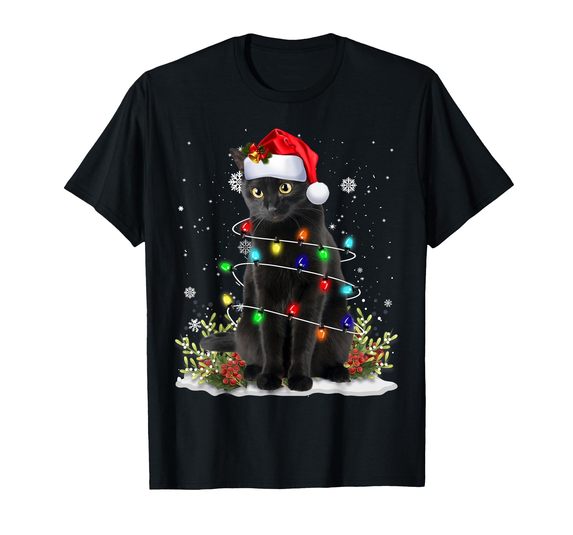Black Cat Christmas Santa Hat Funny Meowy Cats Women Men T-Shirt