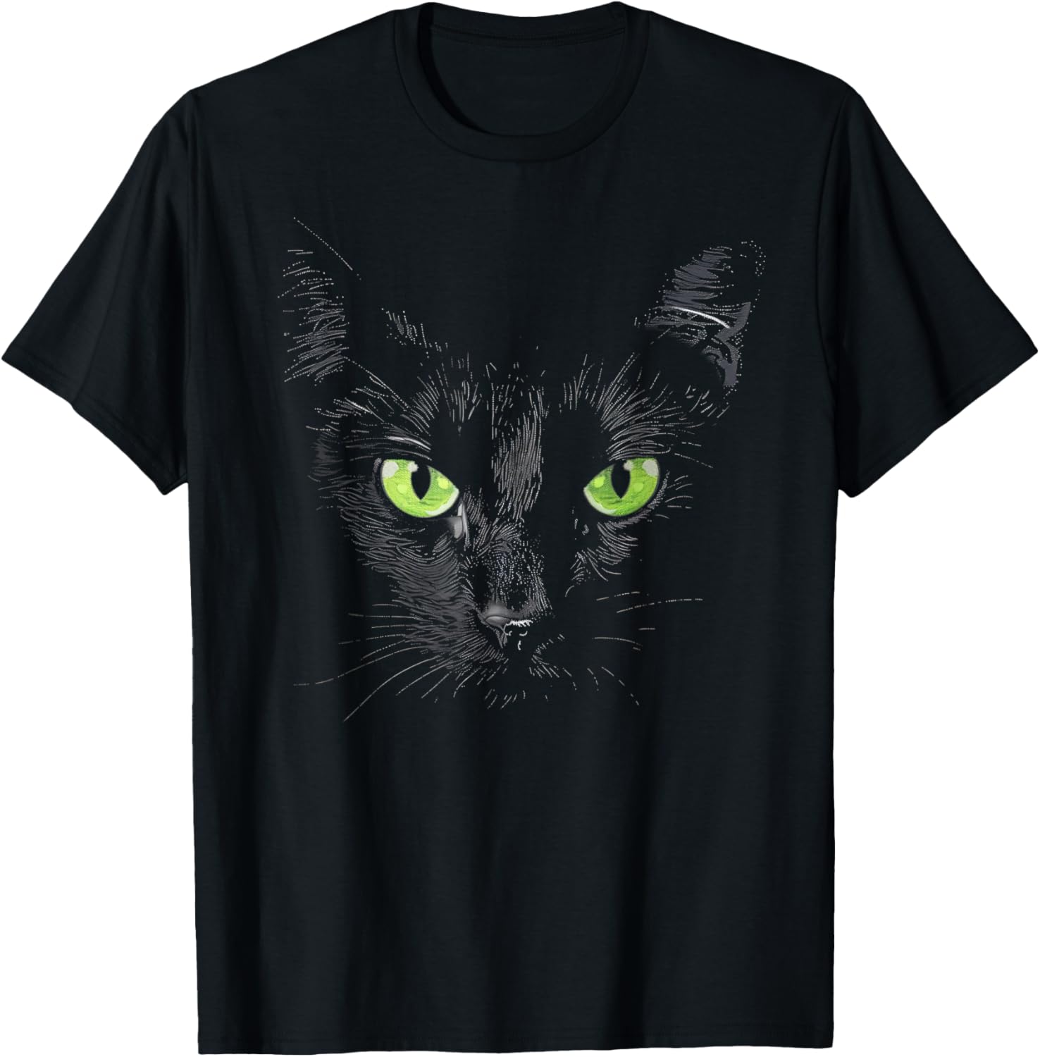 Funny Black Cat Face Green Eyes Kitten Halloween Costume T-Shirt