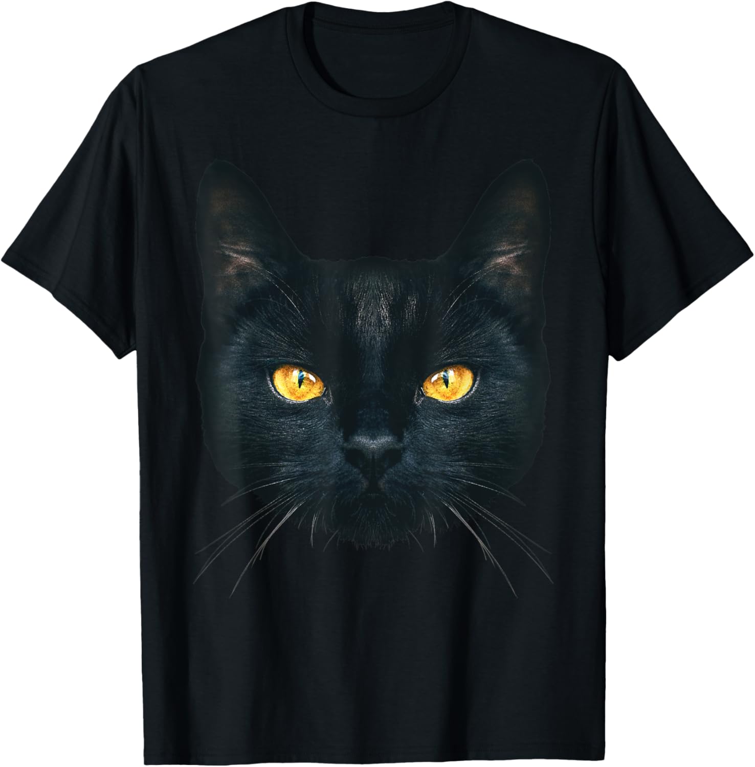 Black Cat Face Yellow Eyes Halloween T-Shirt